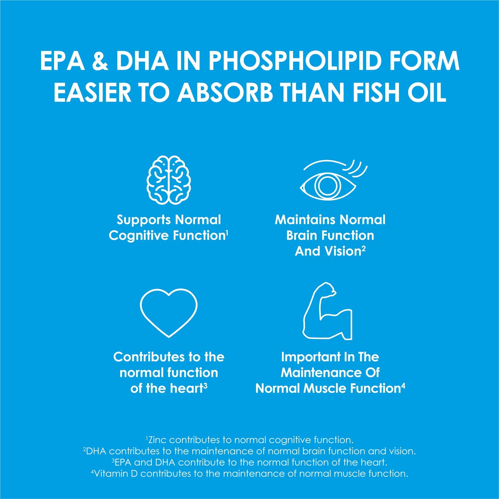 - SUPERIOR OMEGA 3 - The EPA & DHA in Krill Oil is carried by phospholipids. This is the same type of fat our cells are made from; this makes them more easily absorbed by the body.
