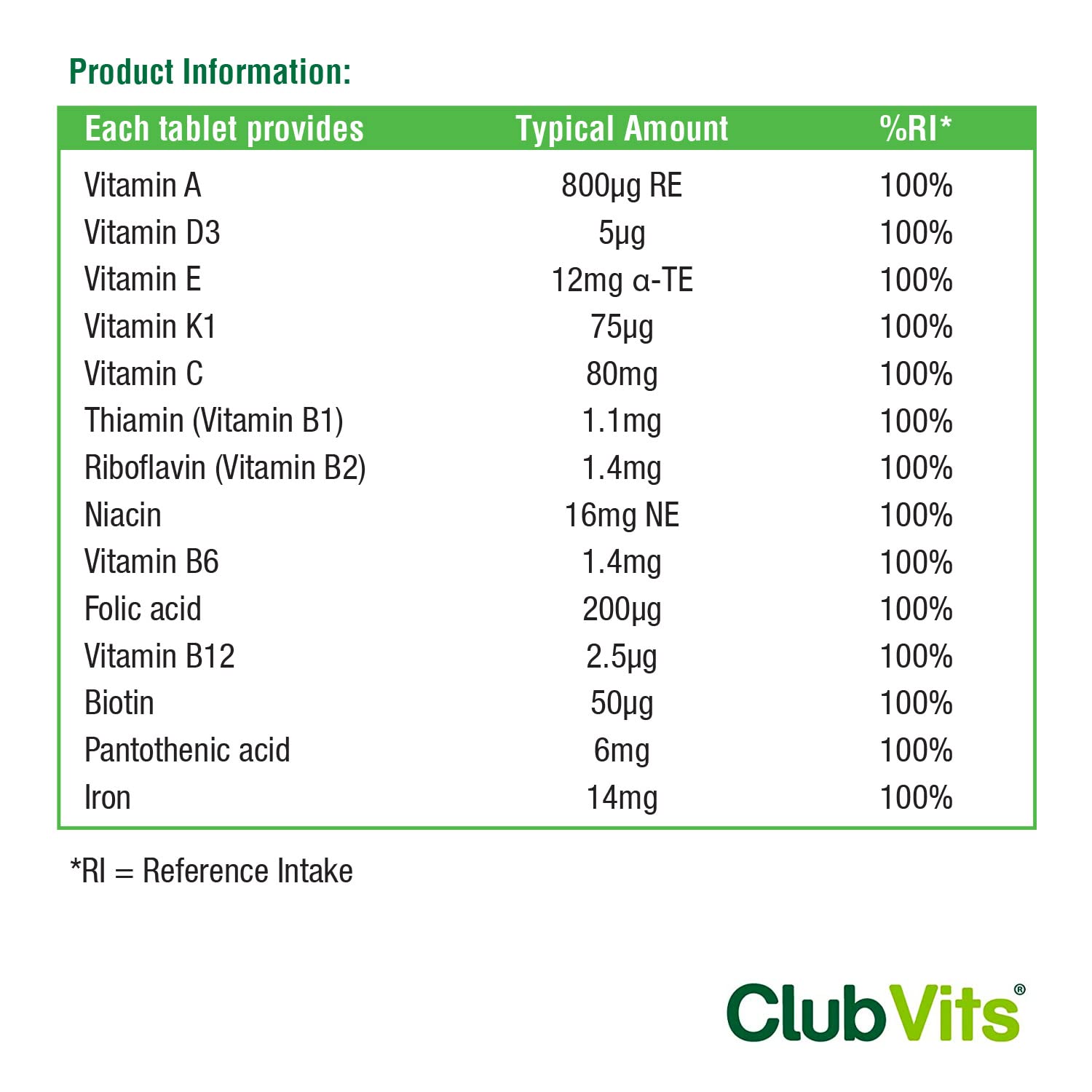 Club Vits Multivitamin & Iron 360 Tablets | One A Day Formulation for Men Or Women | UK Manufactured | Immune Defence: Vitamin C D & B6 Supports Immune System