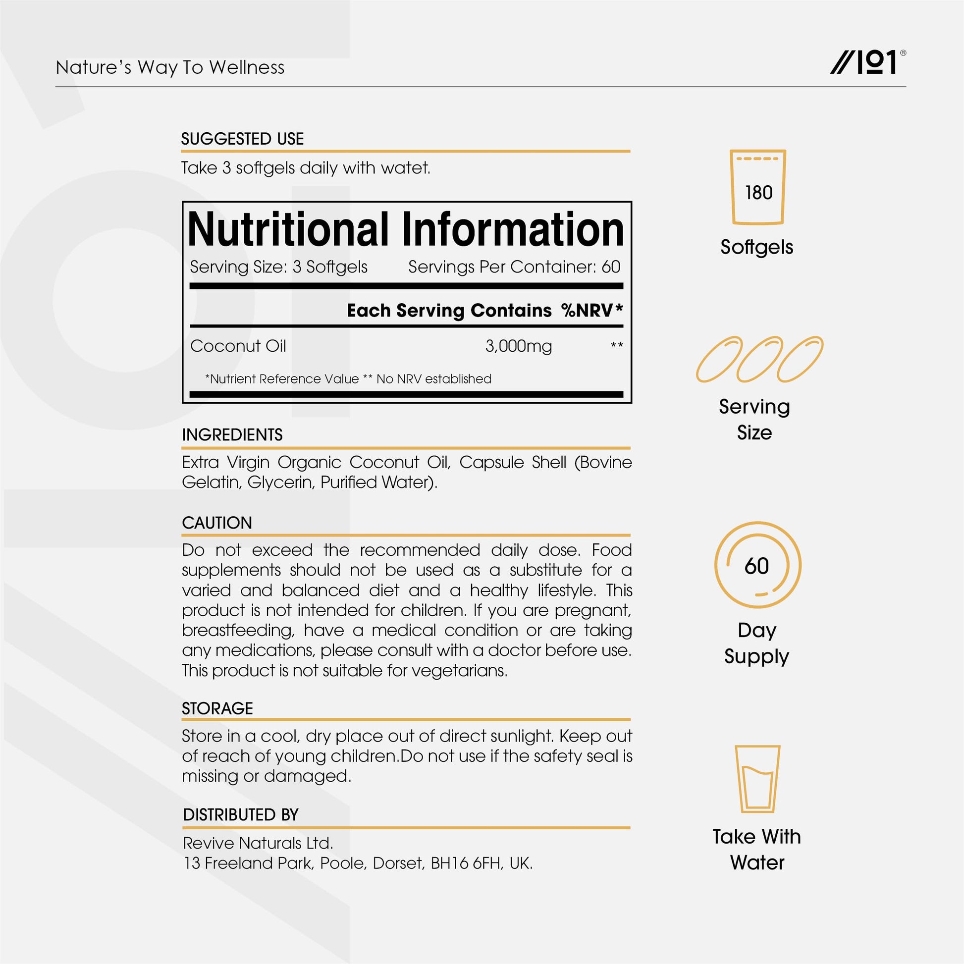 Coconut Oil Capsules 3000mg – 180 Softgels – Cold Pressed Extra Virgin Coconut Oil – Resealable and Recyclable Pouch by Alpha01