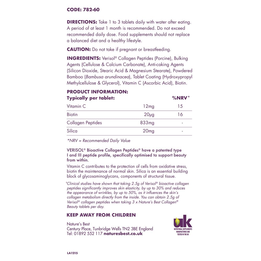 Collagen Beauty Capsules - 60 Capsules | Supports Skin Elasticity & Reduces Fine Lines | Patented VERISOL® Bioactive Peptides | Generous Levels of Collagen per dose & Taste-Free! (Tablets)