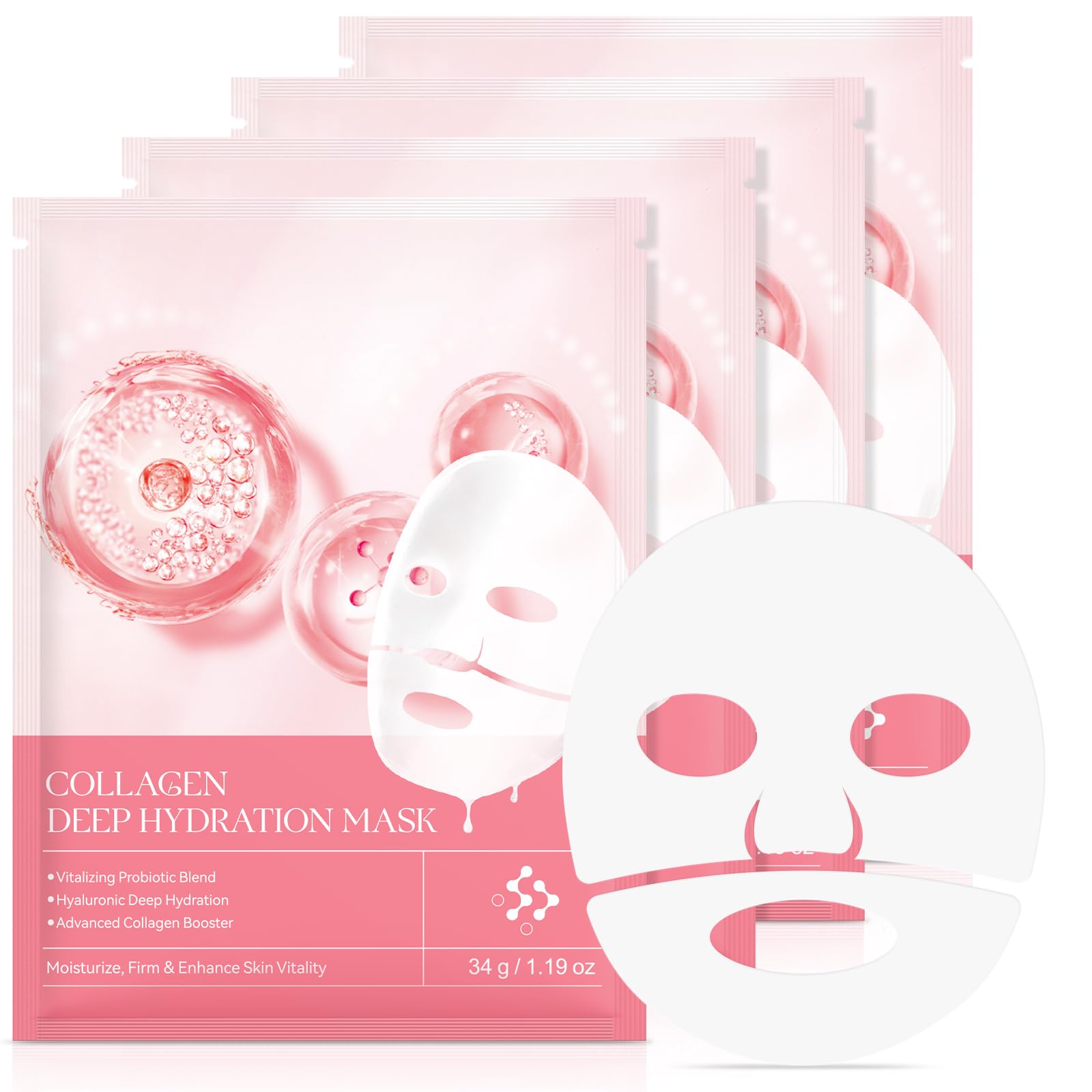 Collagen Face Mask, Hydrating Overnight Hydrogel Mask, Deep Collagen Anti Wrinkle Firming Lifting Moisturizing Face Mask- 4 Pack