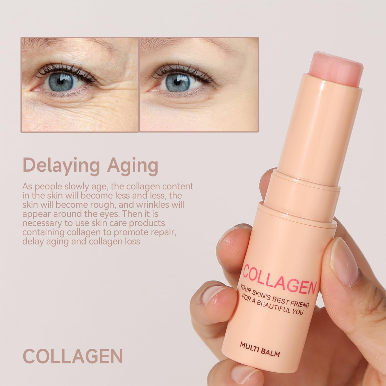 Collagen Multi Balm Stick – Wrinkle Care Face Moisturiser, Hydrating Eye & Lip Balm, Collagen-Nourishing Moisture Stick for Face, Eyes, Lips and Neck, Compact 7g Travel Skincare