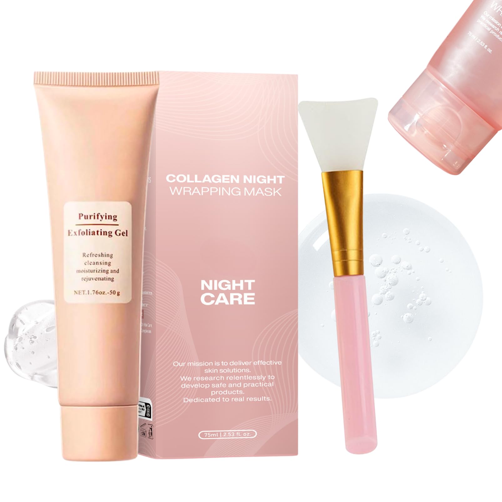 Collagen Night Wrapping Mask Skin Care Set - Collagen Face Mask Beauty Gift Set - Facial Overnight Wrapping Peel Off Mask and Purifying Exfoliating Gel - Reduce Sagging & Dullness (3pcs)