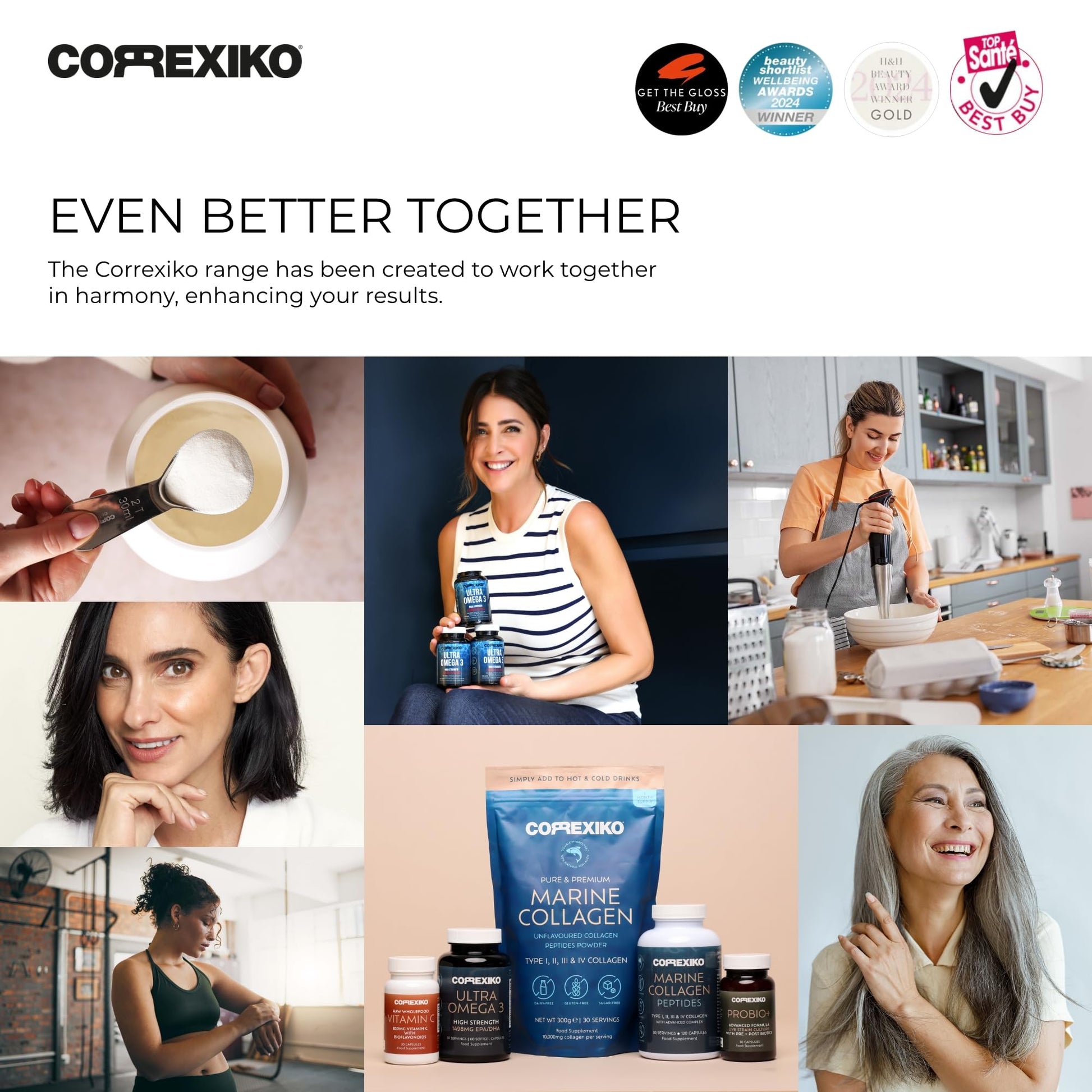 - WHY CHOOSE CORREXIKO'S SUPPLEMENTS: Correxiko is founded by a British medical Doctor with over 10 years of experience researching the benefits of Marine Collagen. All of our supplements are formulated to the highest medical standards with each ingredient carefully chosen for its skin health properties and ability to work in synergy with your body's natural collagen production and provide you with the most effective results.