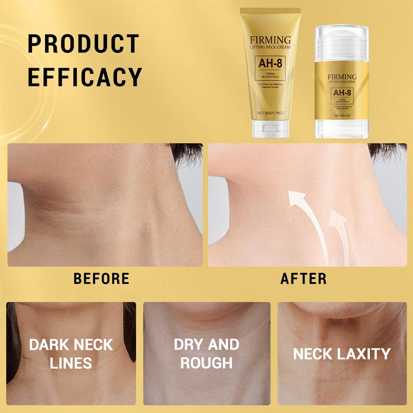 COWANIEE 50g Ah-8 Firming Neck Cream + 30g Neck Care Stick- Neck Creams Set for Sagging and Tightening- Lift Sagging Skin