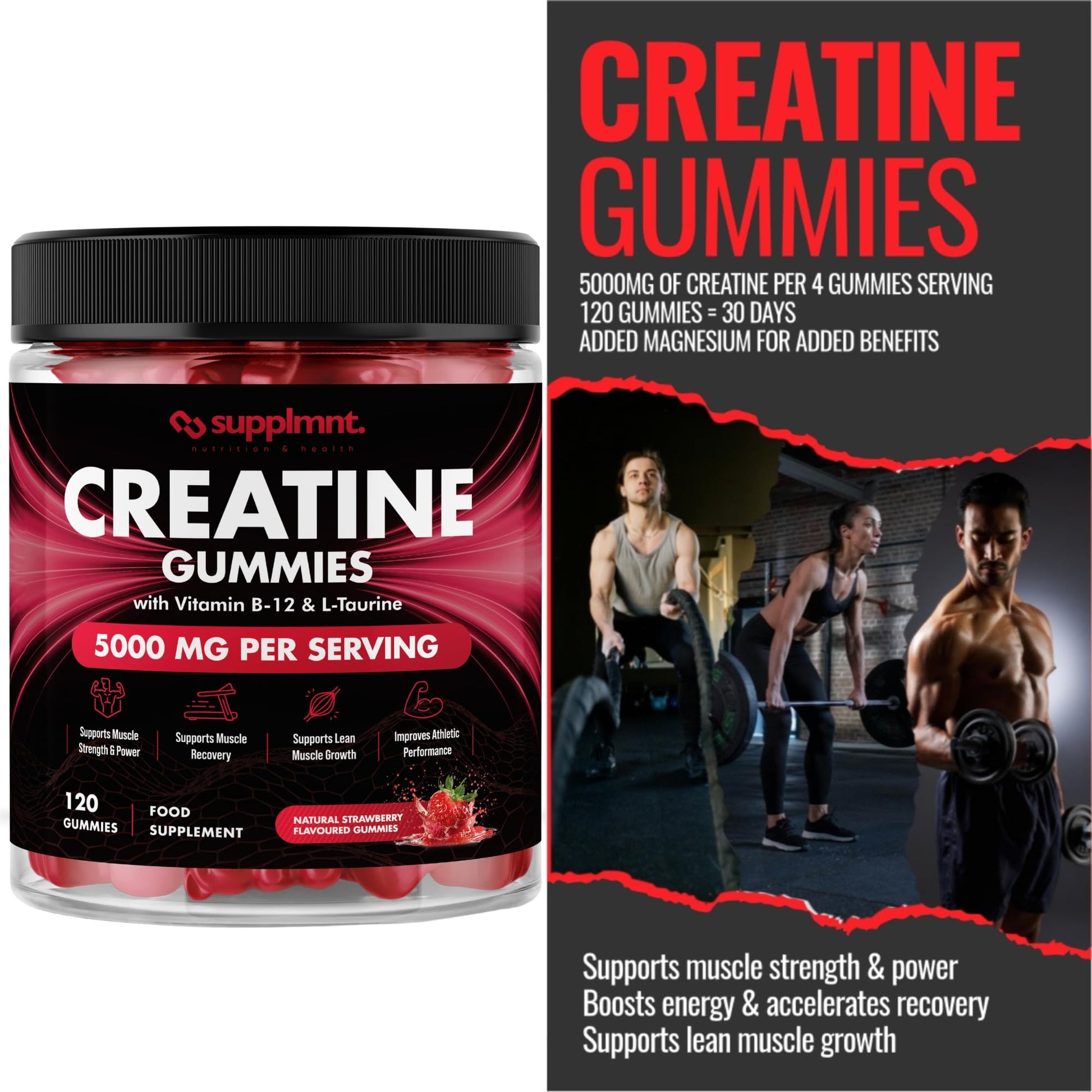 Creatine 120 Gummies Max 5000mg for Men & Women Creatine Monohydrate Plus B12 and L-Taurine Chewable Gummies, Strawberry Flavour 1 Month Supply (1 Count (Pack of 120), Strawberry)