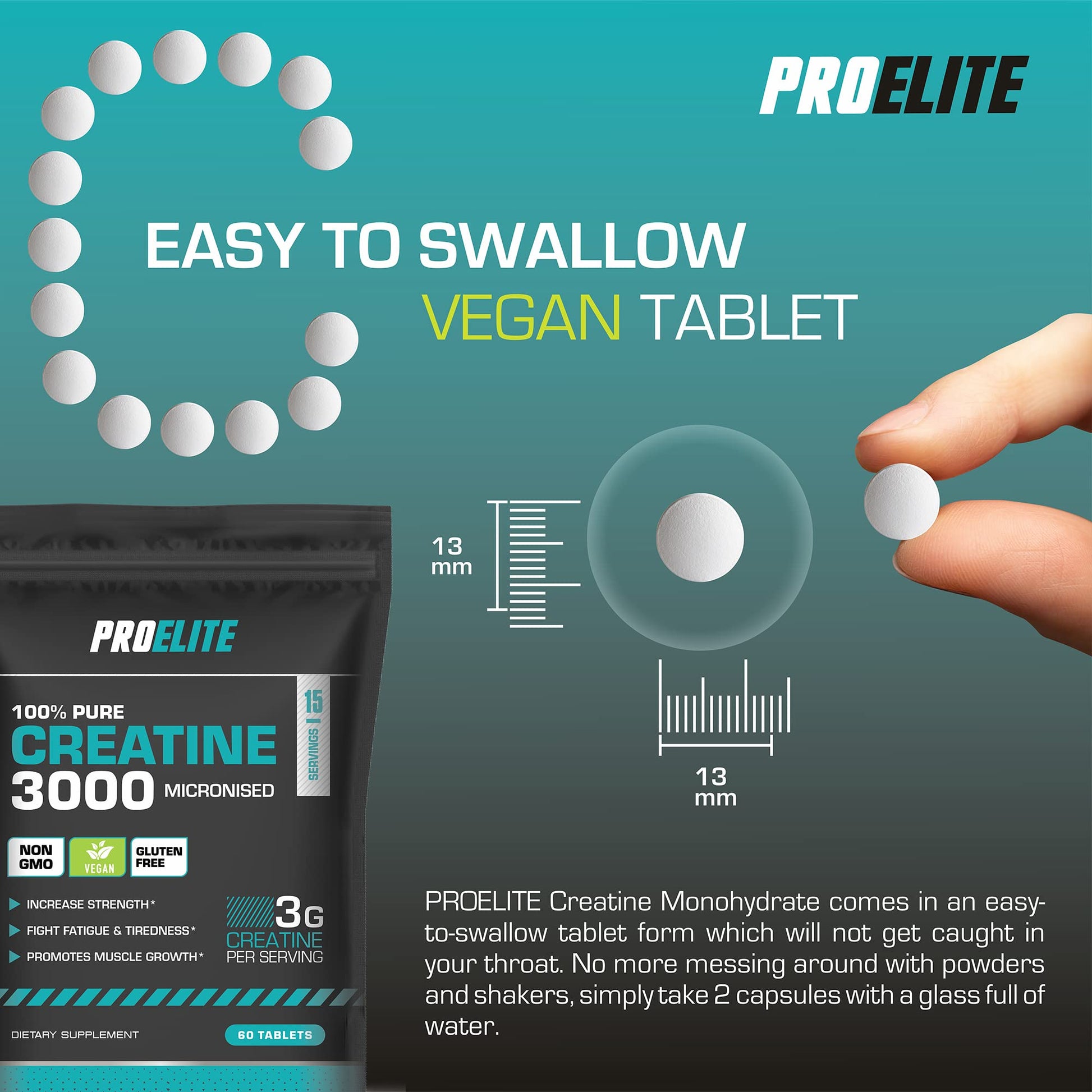 Creatine Monohydrate 3000mg - 420 Tablets - Gym Energy Supplement for Men & Women for Workout - Micronised Creatine Powder Capsules Alternative - Vegan & Keto Unflavoured by PROELITE