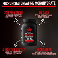 Stronglife Creatine Monohydrate Powder 1000 grams - Unlock Your Athletic Potential Maximize your workouts and accelerate recovery with Stronglife's Creatine Monohydrate Powder. Our premium formula is designed for serious athletes and fitness enthusiasts who demand the best in their supplement regimen. Product Features: Ultra-Fine 200 Mesh Quality: Our creatine powder features an ultra-fine 200 mesh grade for exceptional solubility and easy mixing. Say goodbye to clumping and enjoy a smooth, easy-to-consume drink, perfect for rapid absorption and optimal bioavailability. Pure & Potent Formula: Delivering 5 grams or 3 grams of 100% pure, micronised creatine monohydrate per serving, this supplement is free from fillers and unwanted additives, ensuring you receive nothing but the best for your muscle recovery and performance needs. Enhances Physical Performance: Scientifically proven to boost physical performance, our creatine helps increase power and speed, ideal for explosive sports, weight training, and high-intensity fitness activities. Accelerates Muscle Recovery: Not only does creatine increase your energy output, but it also plays a critical role in muscle synthesis and recovery, aiding in quicker recovery times and increased muscle mass. Unflavoured Versatility: Mix our unflavoured powder effortlessly into any shake, smoothie, or beverage without altering its taste. Its neutral flavor makes it a seamless addition to your daily diet. Long-Lasting Supply: Each 1 KG tub contains 200 servings if you take 5 grams per serving or if you take 3 grams then the serving increases to 333 meaing it provides more than 6 months of supply, making it an excellent value for continuous support in your fitness and health journey. Easy Mixing Instructions: Incorporate one scoop (5g) of Stronglife Creatine Monohydrate into water, juice, or your preferred shake. It can be consumed pre-workout, post-workout, or at any time during the day to maintain elevated creatine levels. Commitment to Quality: At Stronglife, we are dedicated to quality. Our creatine powder is manufactured in a GMP-certified facility, ensuring you receive a high-quality, potent product every time. Choose Excellence for Your Training: Opt for Stronglife Creatine Monohydrate Powder to support your athletic goals. Ideal for anyone looking to enhance their training efficiency, speed up recovery, and boost muscle growth. Invest in your performance with confidence!More Info
