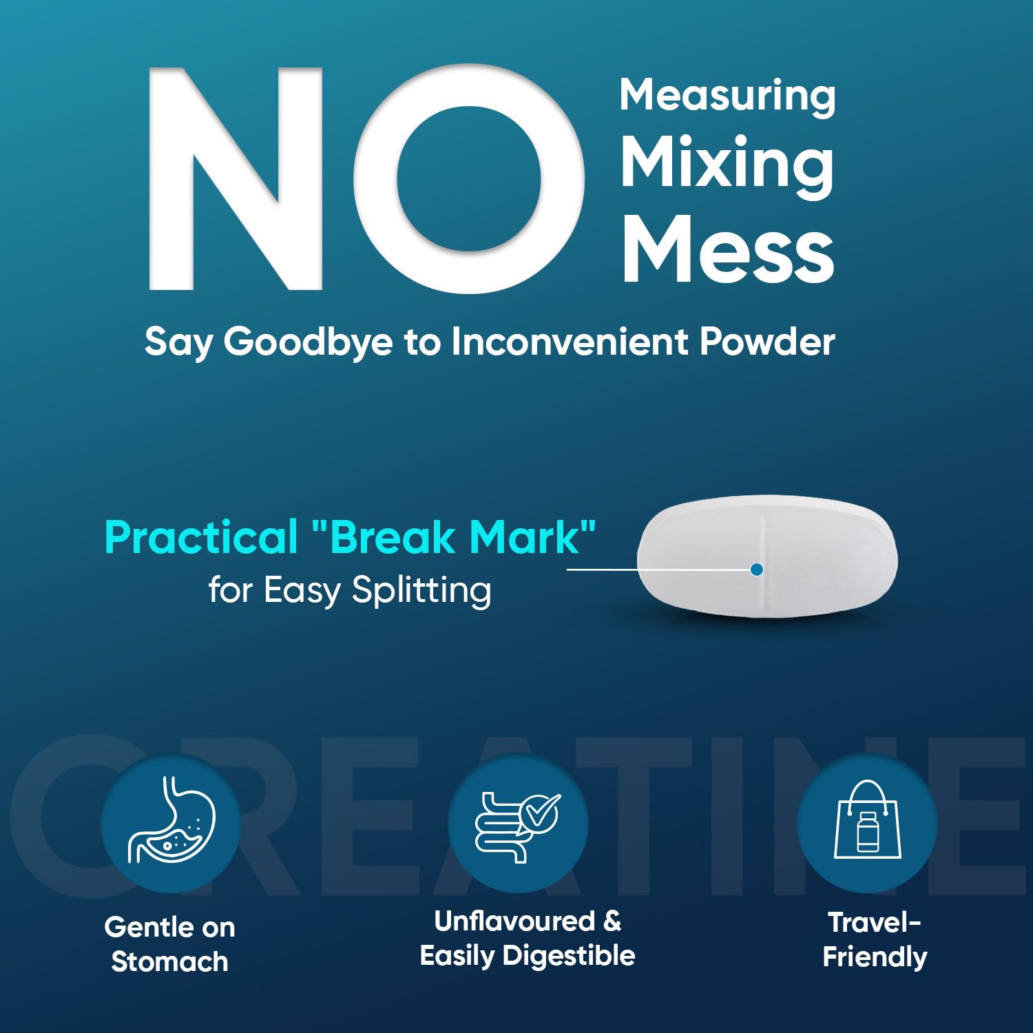 creatine monohydrate powder pre workout powder protein powder Creatine Monohydrate Tablets 3000mg - 270 Creatine Tablets - Gym Supplement for Men & Women - Creatine Monohydrate Powder Alternative - Vegan & Keto Unflavoured Energy Supplement for Workout 270 EASY TO TAKE CREATINE MONOHYDRATE TABLETS: Aside from just providing a potent 3000mg boost of raw Creatine per serving (1000mg per tablet), our Creatine supplement also delivers value as a single bottle contains 270 Creatine powder tablets, giving you prolonged muscle workout fuel. These pre workout powder tablets are made of only 100% natural ingredients & are free from artificial colours & flavours to ensure your safety, unlike other flavoured Creatine tablets available. IDEAL MUSCLE WORKOUT TABLETS FOR SPORT & GYM PERFORMANCE: Creatine Monohydrate is essential in supporting the phospho-creatine system in muscle performance. This is the energy process used in high-intensity bursts of exercise like weight lifting, sprinting & jumping. Creatine contributes to the increase in physical performance in successive bursts of short-term, high-intensity exercise (EFSA Approved). Add these Creatine tablets (not Creatine Monohydrate capsules) to level up your workout game. 270 EASY TO TAKE CREATINE MONOHYDRATE TABLETS: Aside from just providing a potent 3000mg boost of raw Creatine per serving (1000mg per tablet), our Creatine supplement also delivers value as a single bottle contains 270 Creatine powder tablets, giving you prolonged muscle workout fuel. These pre workout powder tablets are made of only 100% natural ingredients & are free from artificial colours & flavours to ensure your safety, unlike other flavoured Creatine tablets available. LACTOSE-FREE, PREMIUM, VEGAN CREATINE SUPPLEMENT FOR MEN & WOMEN: It's time to achieve all your gym goals, post & pre workout with creatine. Our Creatine pre workout supplement is natural, Vegan.More Info