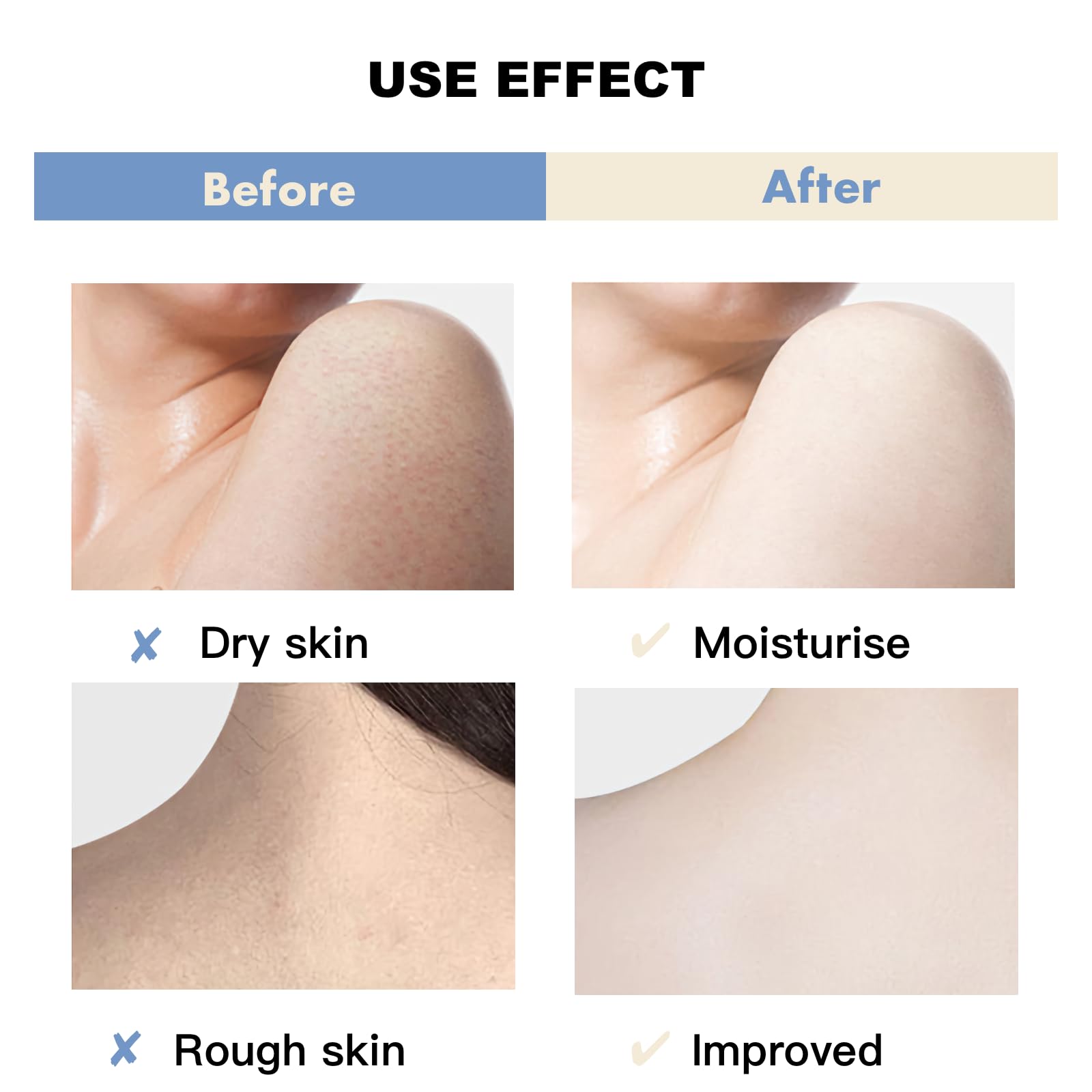 Gently massage into your body, focusing on dry or rough areas like elbows, knees, and heels.