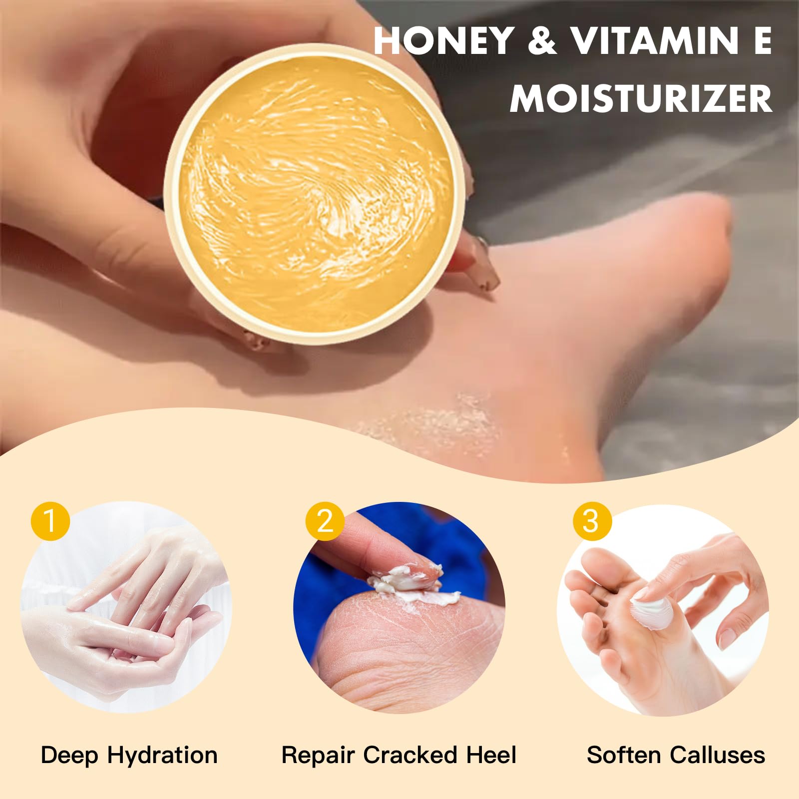 CTUBLIAUNX Foot Cream – Honey & Vitamin E Moisturizer, Cracked Heel Repair and Callus Softener for Extremely Dry Skin, Non-Greasy Deep Hydration for Rough Hands & Feet