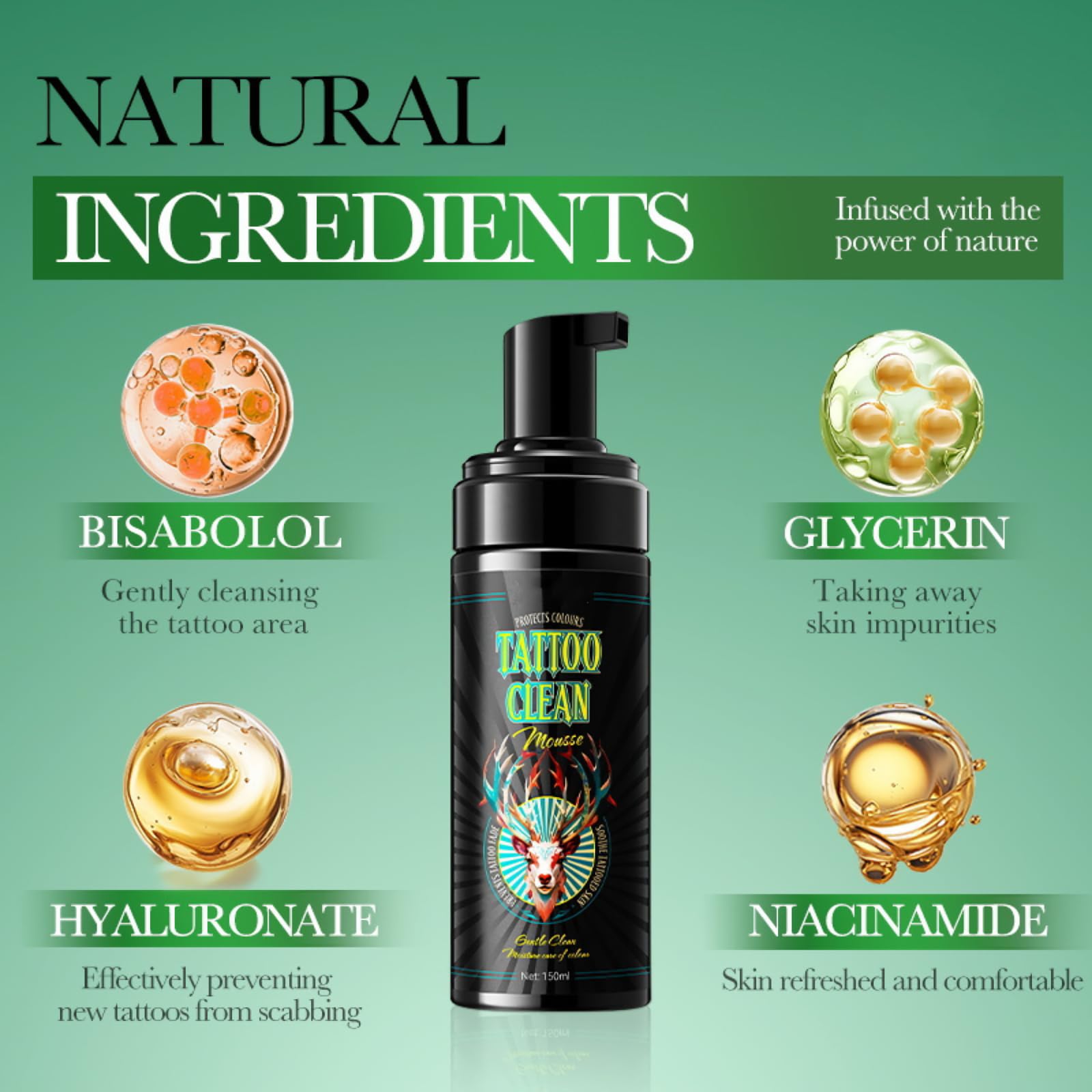 CTUBLIAUNX Tattoo Foaming Cleanser, Tattoo Aftercare Cleansing Foam, Tattoo Clean Soap, Moisturizing & Colour Protection, 150ml