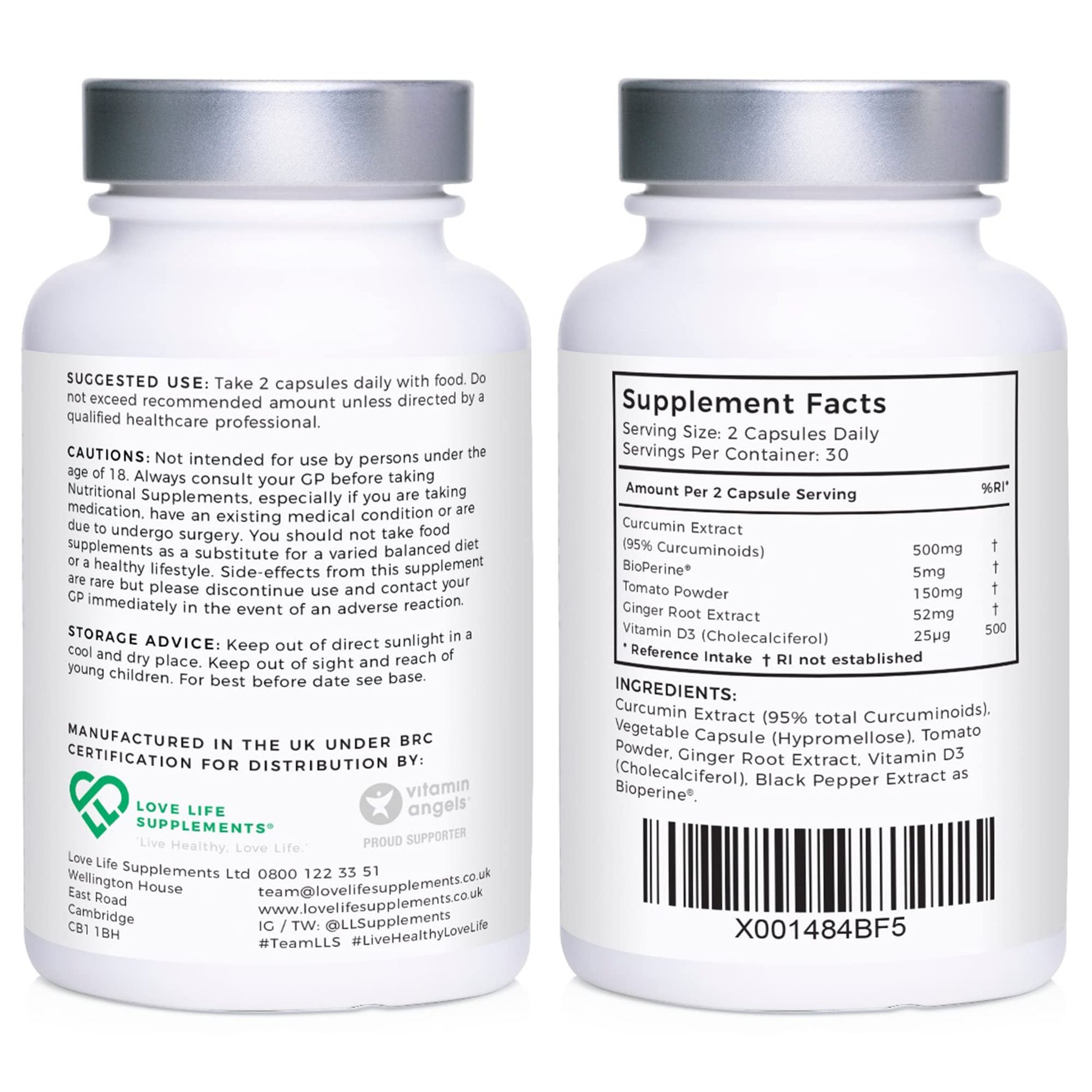 Curcumin 95 Advanced by LLS | High Strength Curcumin (the Active Component of Turmeric) with 95% Curcuminoids + BioPerine®, Vitamin D, Tomato and Ginger Root | 60 Capsules