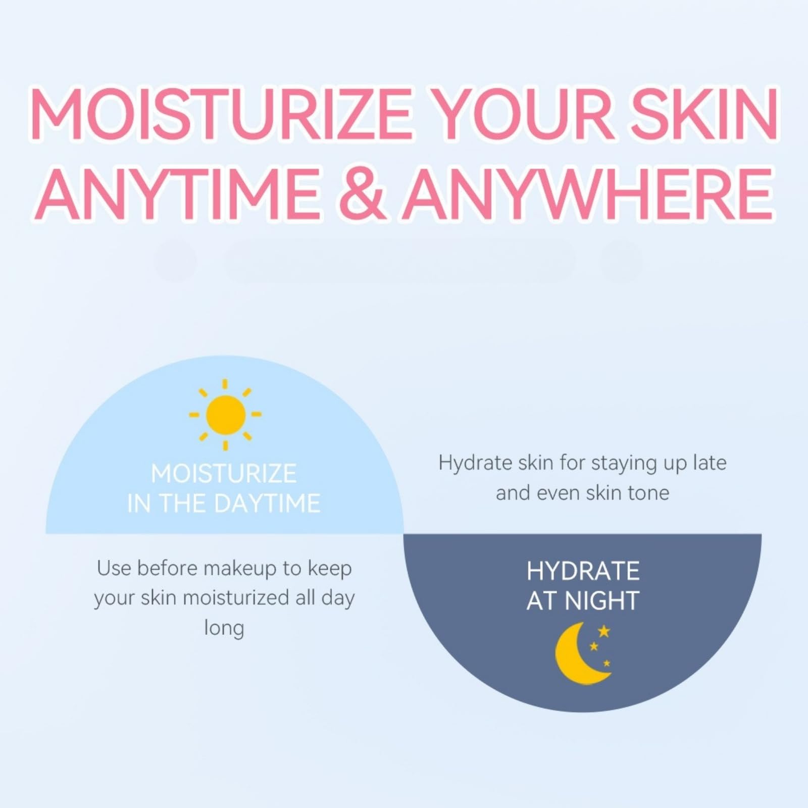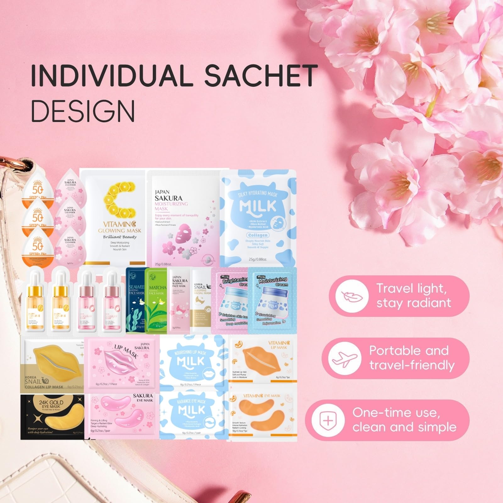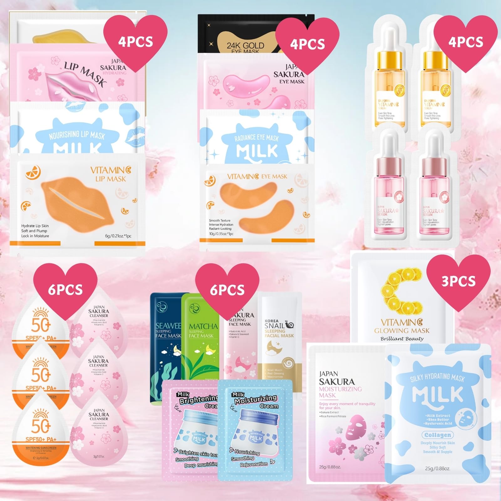 Use each item according to your daily or nightly skincare routine.Apply sleep mask before bed, sunscreen in the morning, and serum or cream as needed. Always follow with hydration for best results.