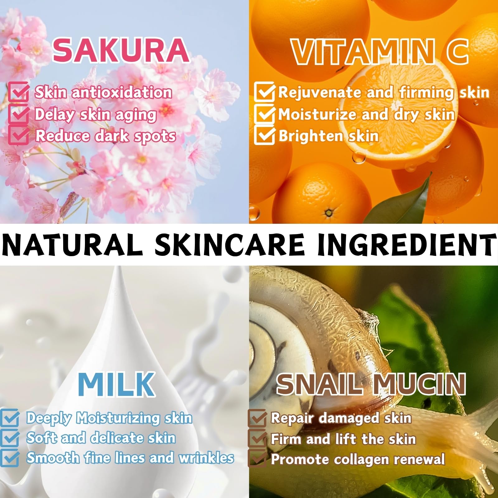 Snail Mucin – Helps repair skin barrier and improve elasticity.