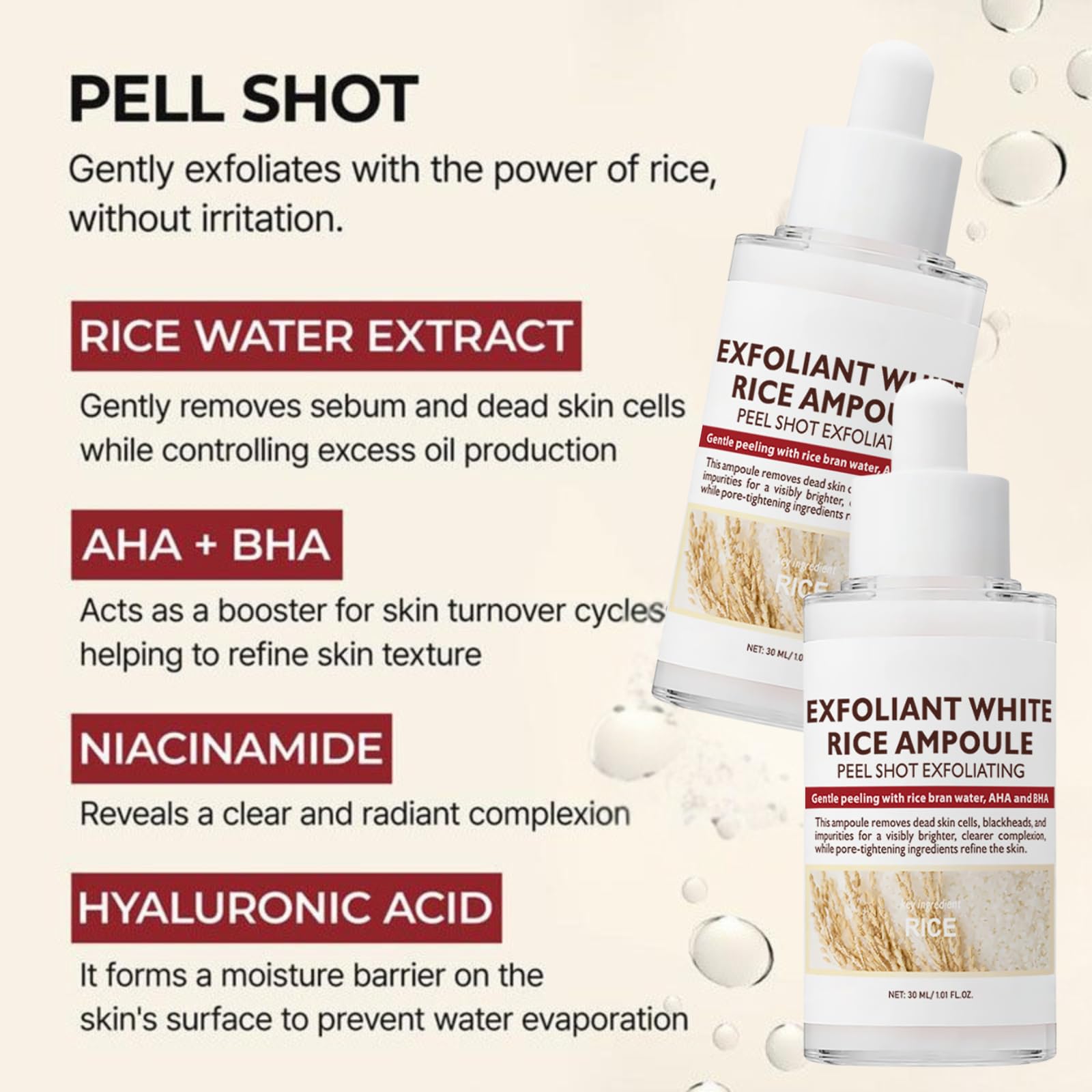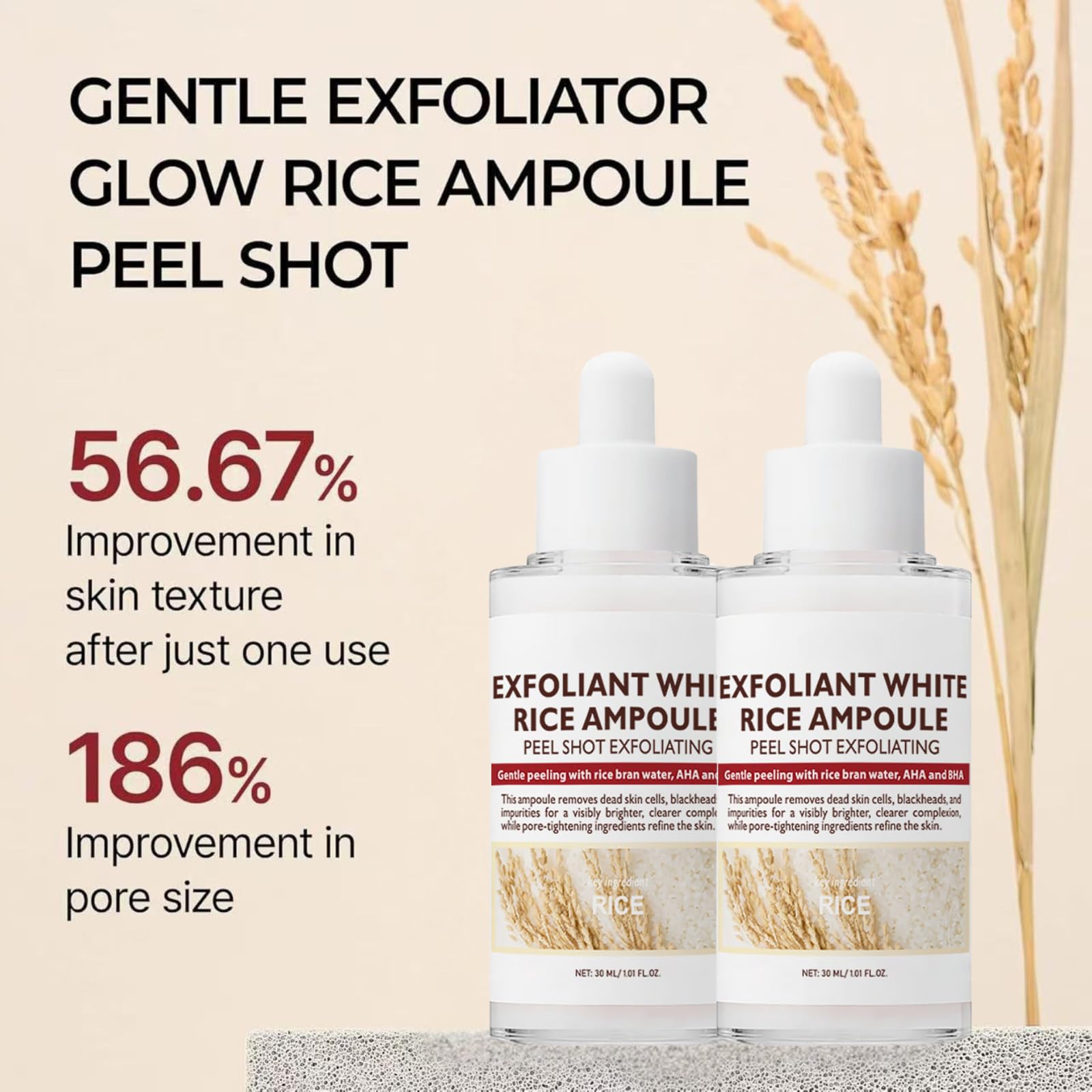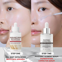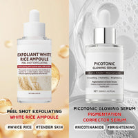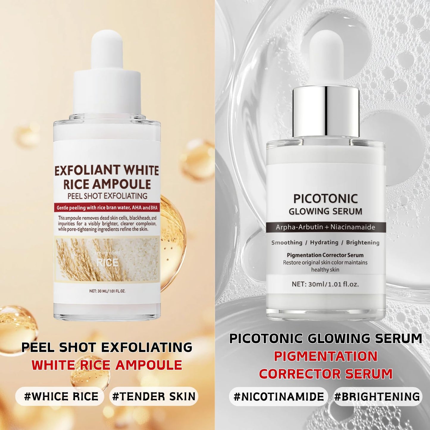 Cureluxe 2PCS Peel Shot Glow Rice Ampoule Duo White Rice + PICOTONIC GLOWING SERUM,Face Scrub Exfoliator Pore Minimizer for Face,Gentle Soft Facial Scrub Exfoliator,Brighten Anti-Aging Serum,Korean Skin Care