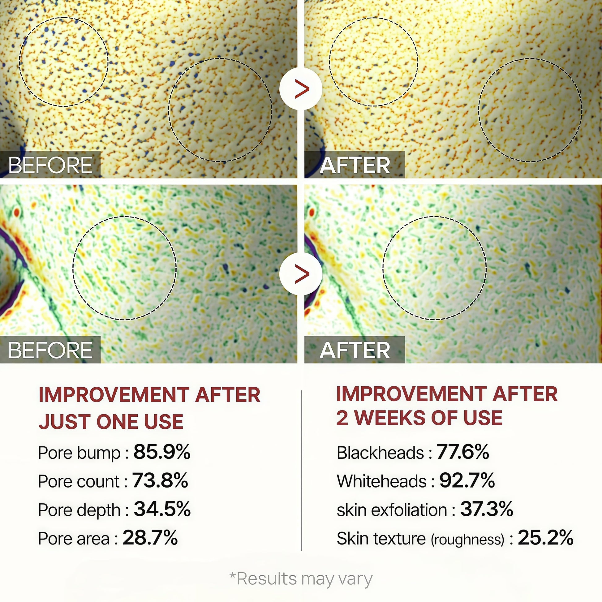 ✔ Minimises pores and fades marks in 8 weeks