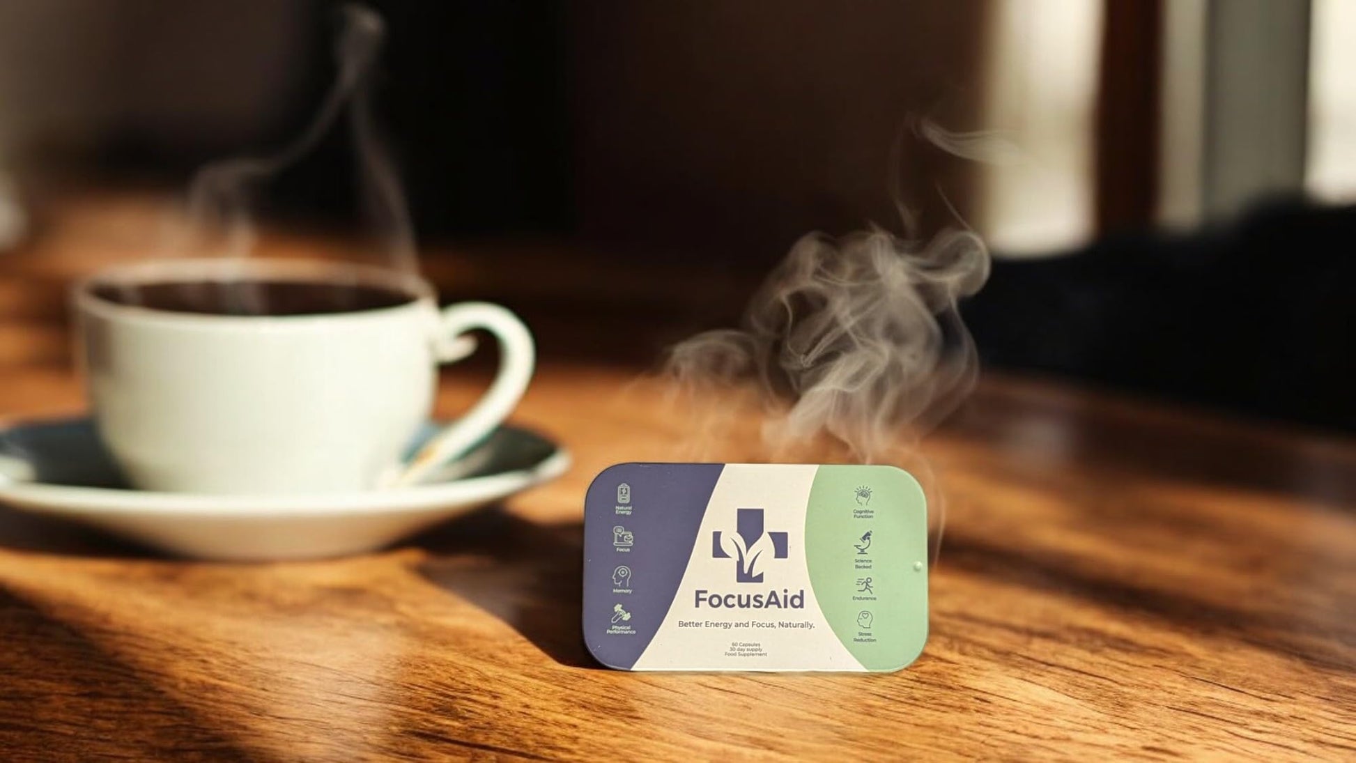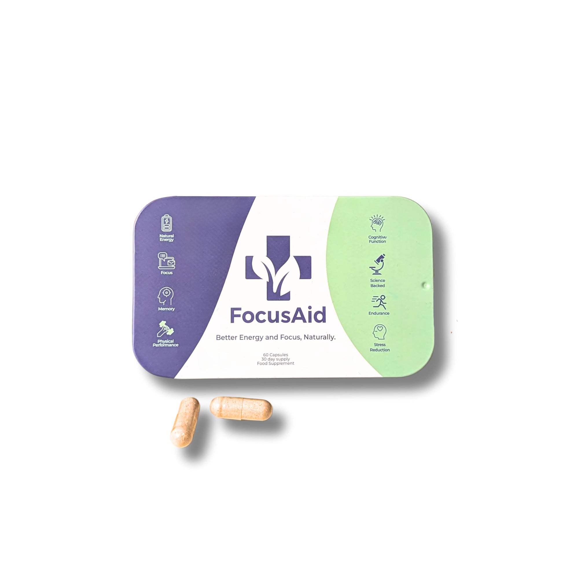 DailyAid FocusAid - Natural Energy Supplement - Nootropics Brain Supplement for Mental Focus & Cognitive Support, Lions Mane Supplement, Caffeine Tablet, Natural Brain Booster - 60 Capsules, Month Supply