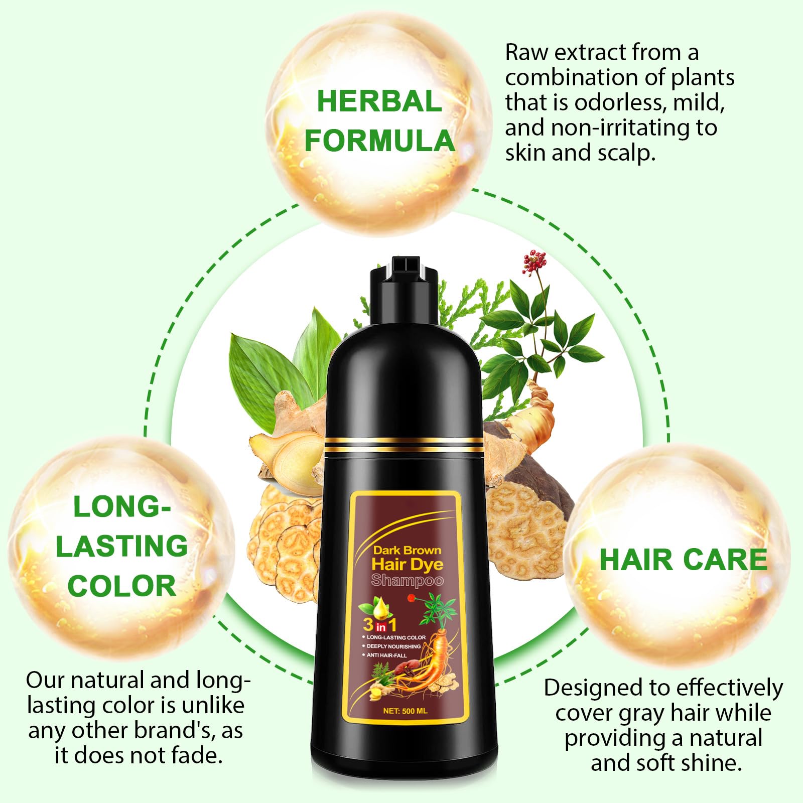 Dark Brown Hair Dye Shampoo, Hair Dye Shampoo 3 in 1 for Gray Hair Coverage Herbal Hair Dye Shampoo Natural Dark Brown Hair Color Shampoo for Women Men
