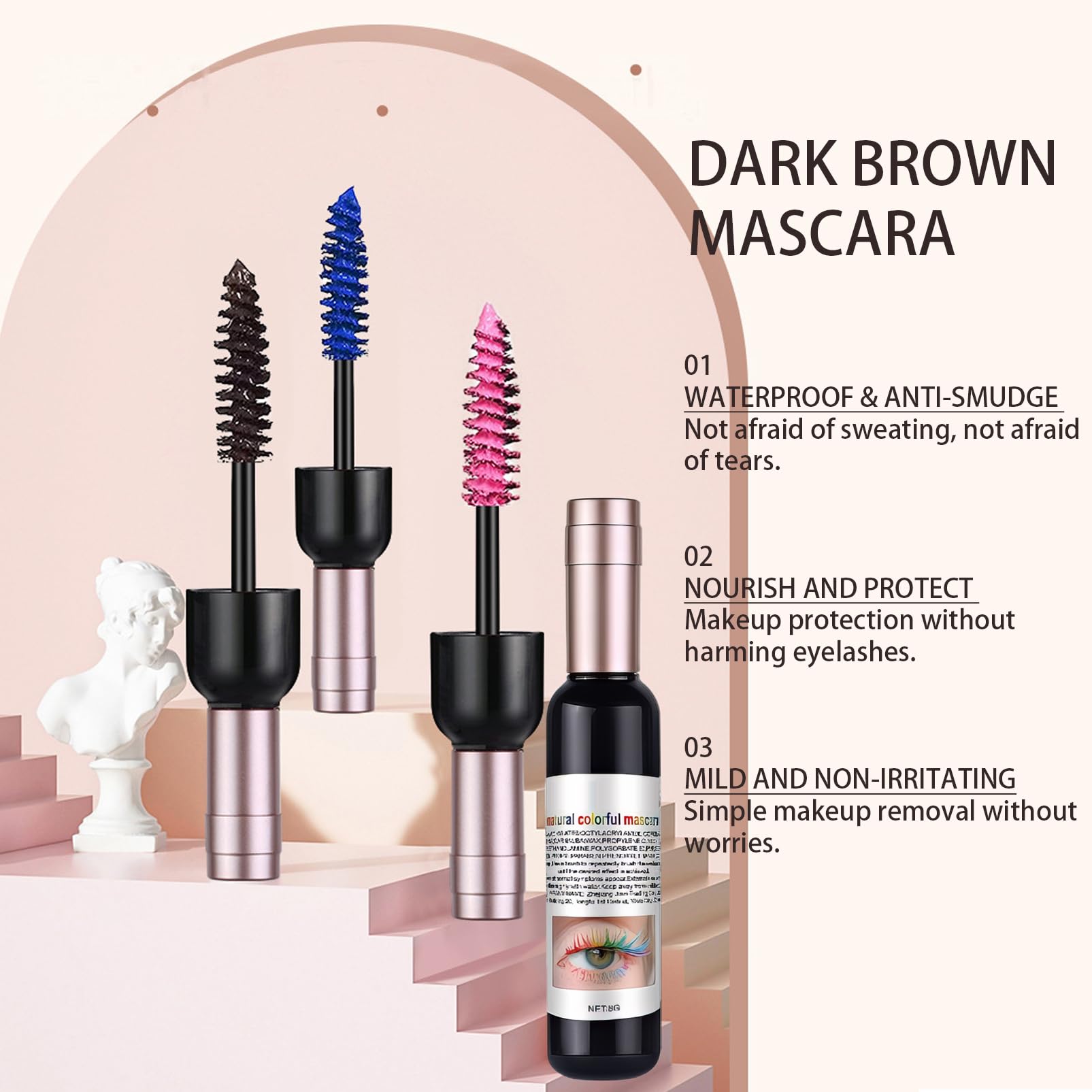 Dark Brown Mascara for Eyes, Long Lasting Thick,Quick Drying & Non-Clump, Smudge-Proof Fiber Mascara, Instant Hair Dye for Christmas, Halloween, Birthdays, Parties