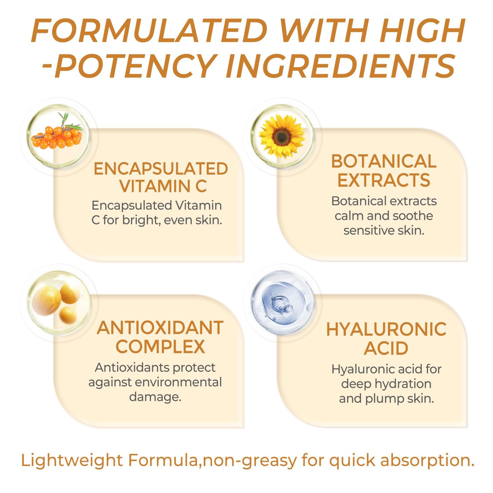 Ingredient: Encapsulated Vitamin C, Antioxidant Complex, Botanical Extracts and Hyaluronic Acid, Etc.
