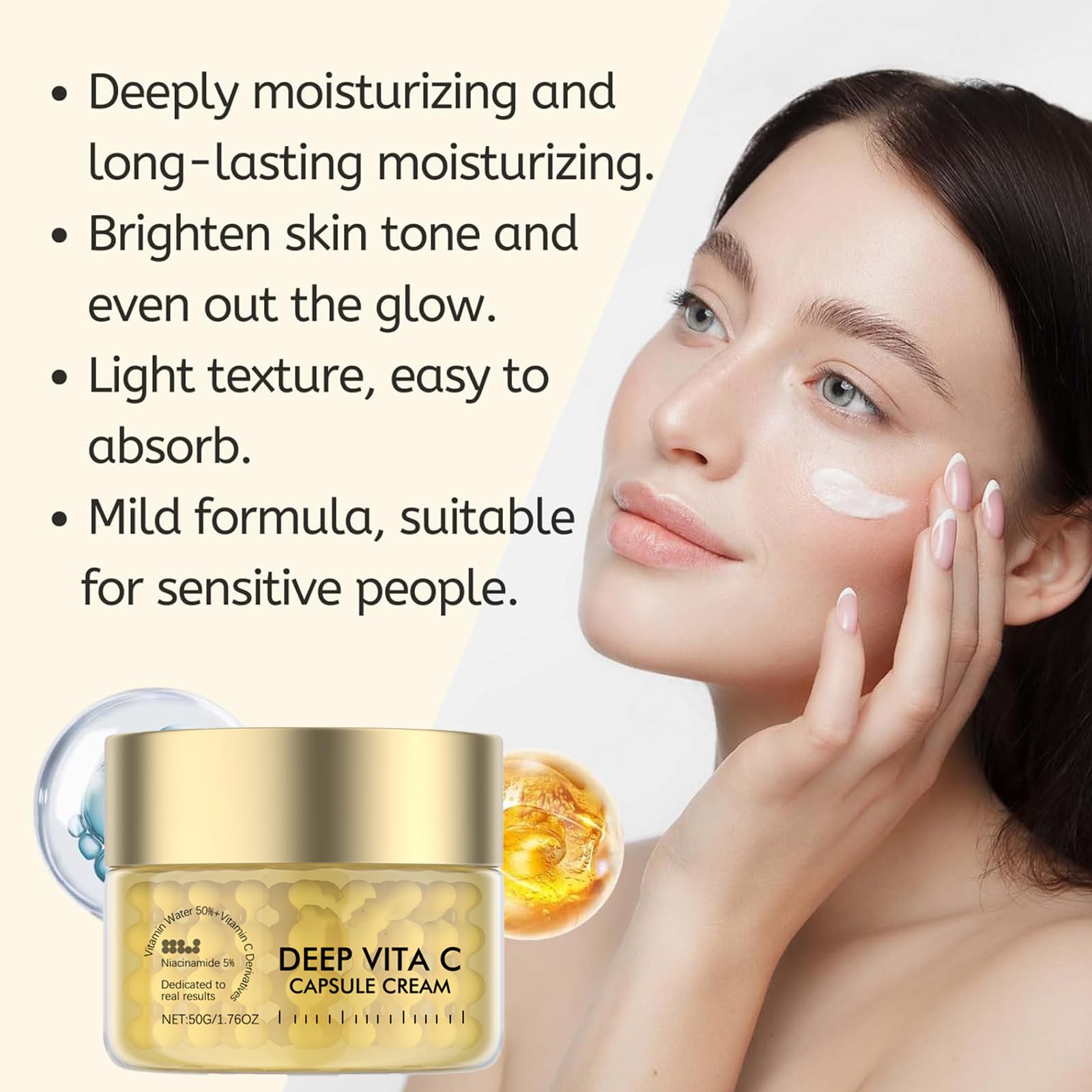 Deep Vita C Capsule Cream, Deep Vitamin C Golden Capsule Face Moisturizer, Vita C Golden Capsules Face Moisturizer with Collagen & 5% Niacinamide - Anti Wrinkles - Hydrating Skin Care (50G/1.76 OZ)