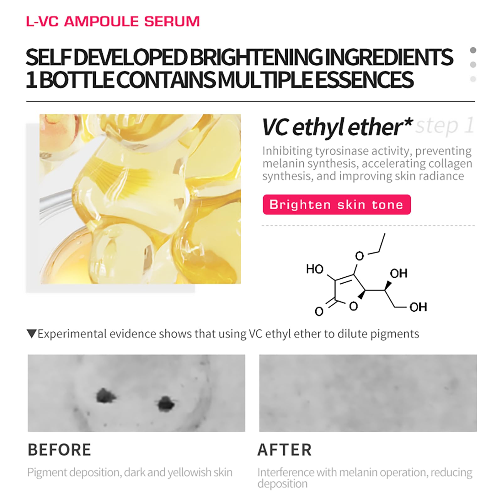 Unveil your skin's natural radiance with DEleventh Vitamin C Ampoule Serum. This advanced formula blends powerful ingredients to deliver exceptional anti-aging, brightening, and hydrating benefits, ensuring a smooth and youthful complexion.The serum features 3-O-Ethyl Ascorbic Acid, a highly stable and effective form of Vitamin C, which reduces dark spots and evens skin tone. Niacinamide (Vitamin B3) and α-Arbutin further enhance brightness, targeting hyperpigmentation and promoting a radiant glow. Pro-Xilane and Ectoin work together to deeply hydrate and improve skin elasticity, leaving your skin plump and revitalized. Allantoin and Madecassoside provide soothing and calming effects, making it suitable for all skin types, including sensitive skin.