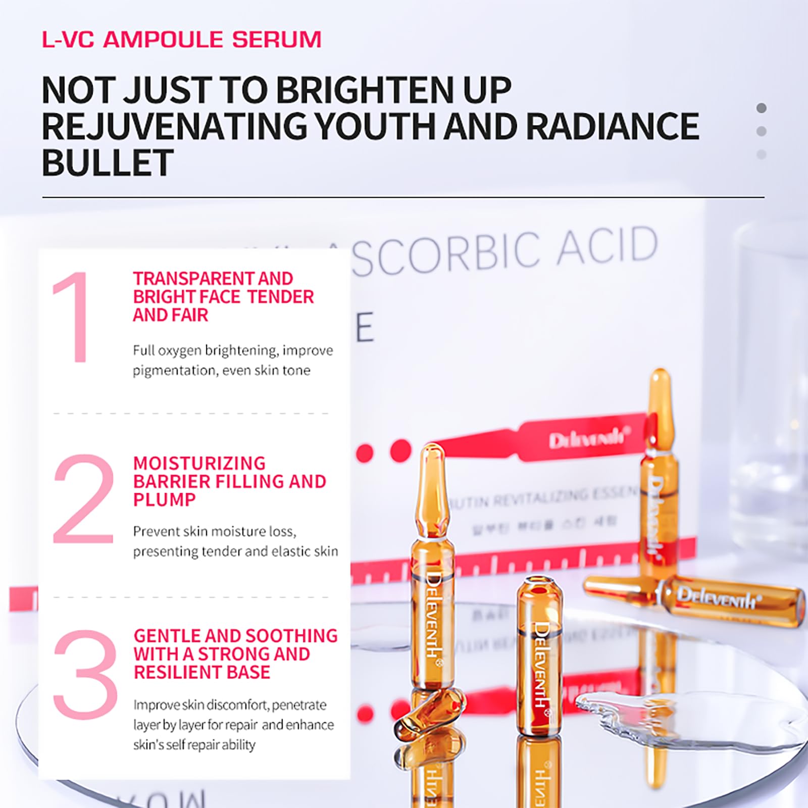 DEleventh Korean Brand Vitamin C Ampoule Serum 2ml × 7EAe / with Niacinamide (Vitamin B3) & Pro-Xilane, Anti-Aging, Brighten, Hydrate, and Smooth Skin, Creates a Radiant, Youthful Complexion