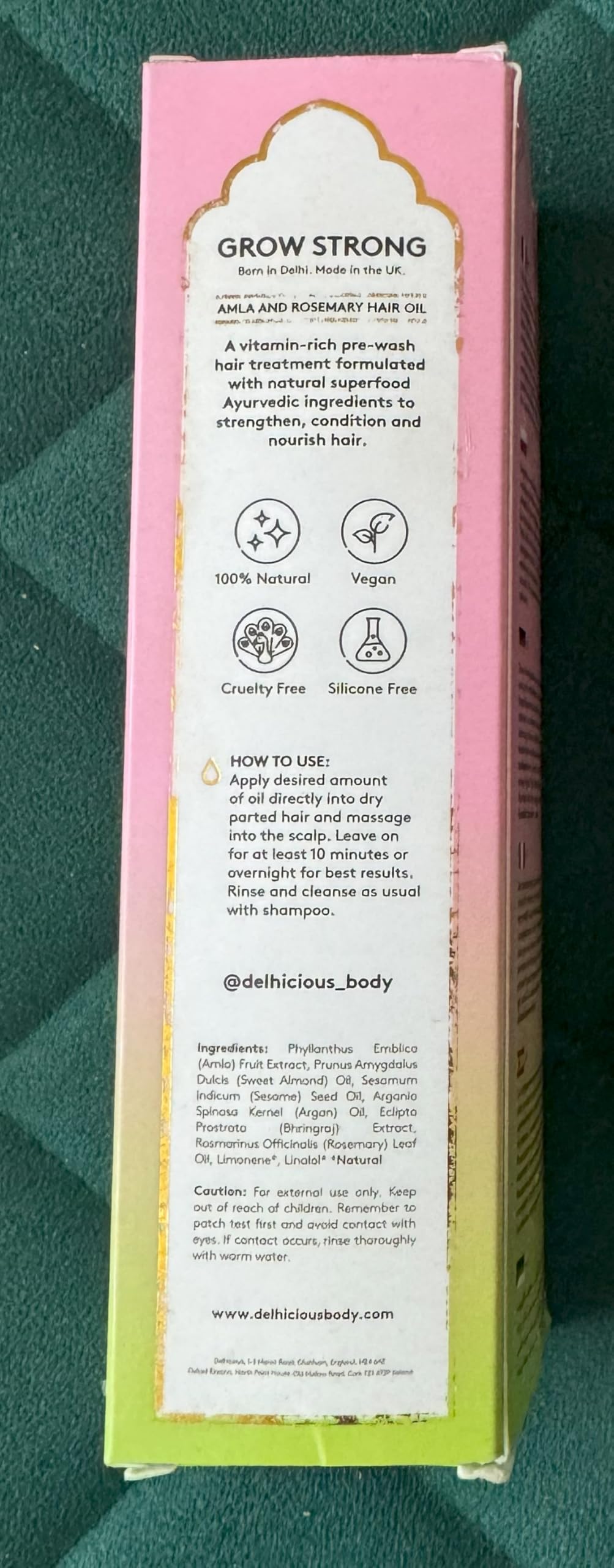 Delhicious Amla Oil & Rosemary Oil for Hair Growth - Rich Roots Hair Loss Treatment for Thinning Hair - Nourishes Dry Scalp, Brightens Dull Hair - Natural, Vegan, Ayurveda - 100ml