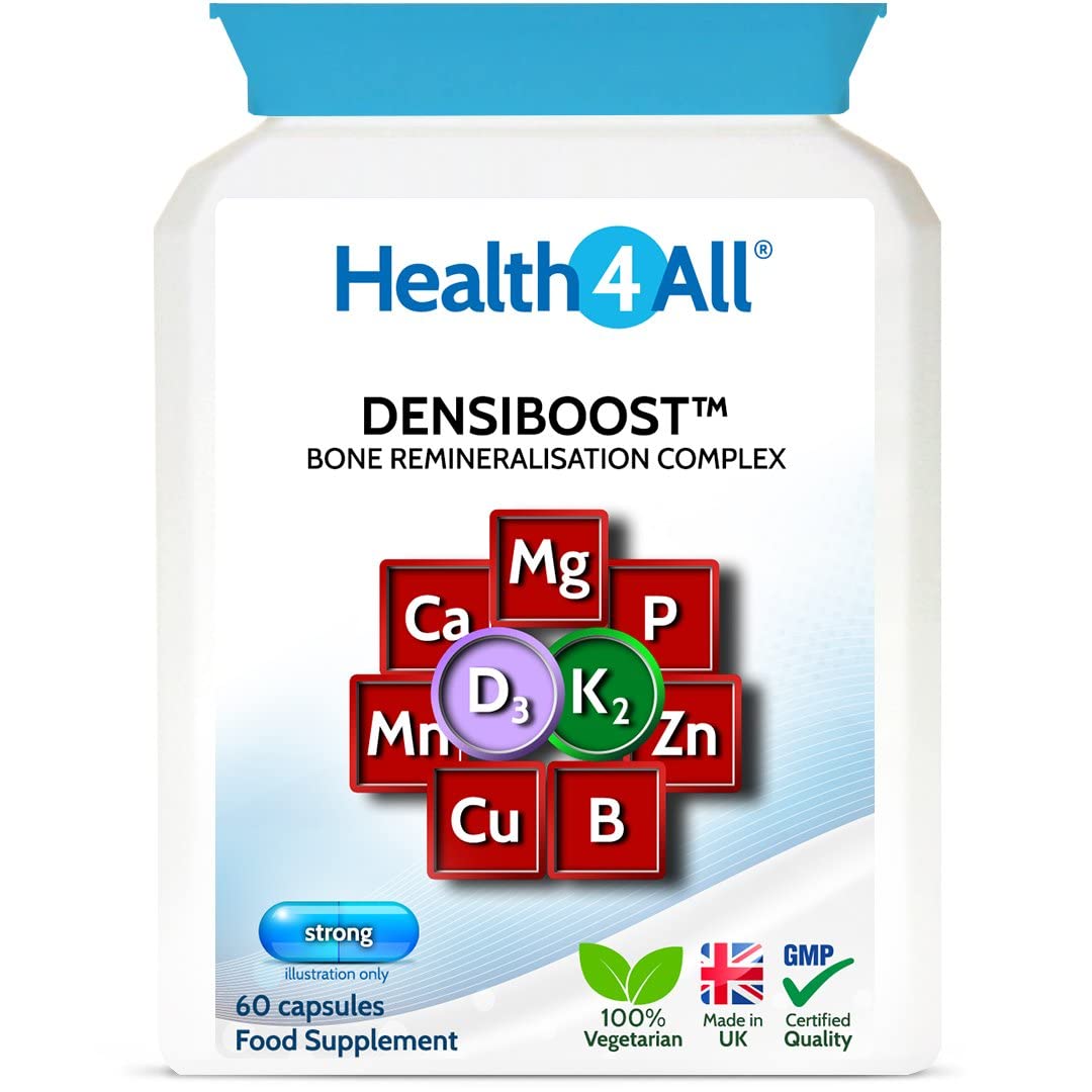 Densiboost Bone Remineralisation 60 Capsules (not Tablets) with Calcium, Magnesium, Manganese, Phosphorus, Copper, Boron, Zinc and Vitamins D3 and K2 MK-7. Made in The UK by Health4All