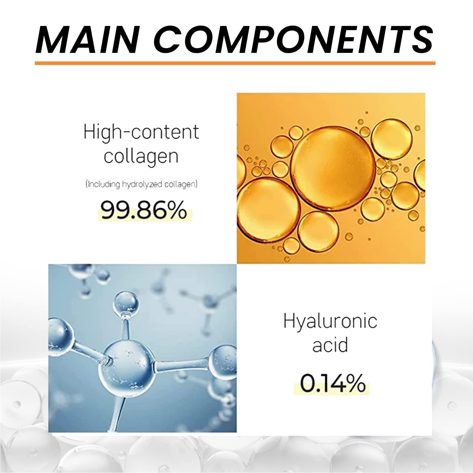 Core ingredients: 99.86% Collagen, 0.14% Hyaluronic acid