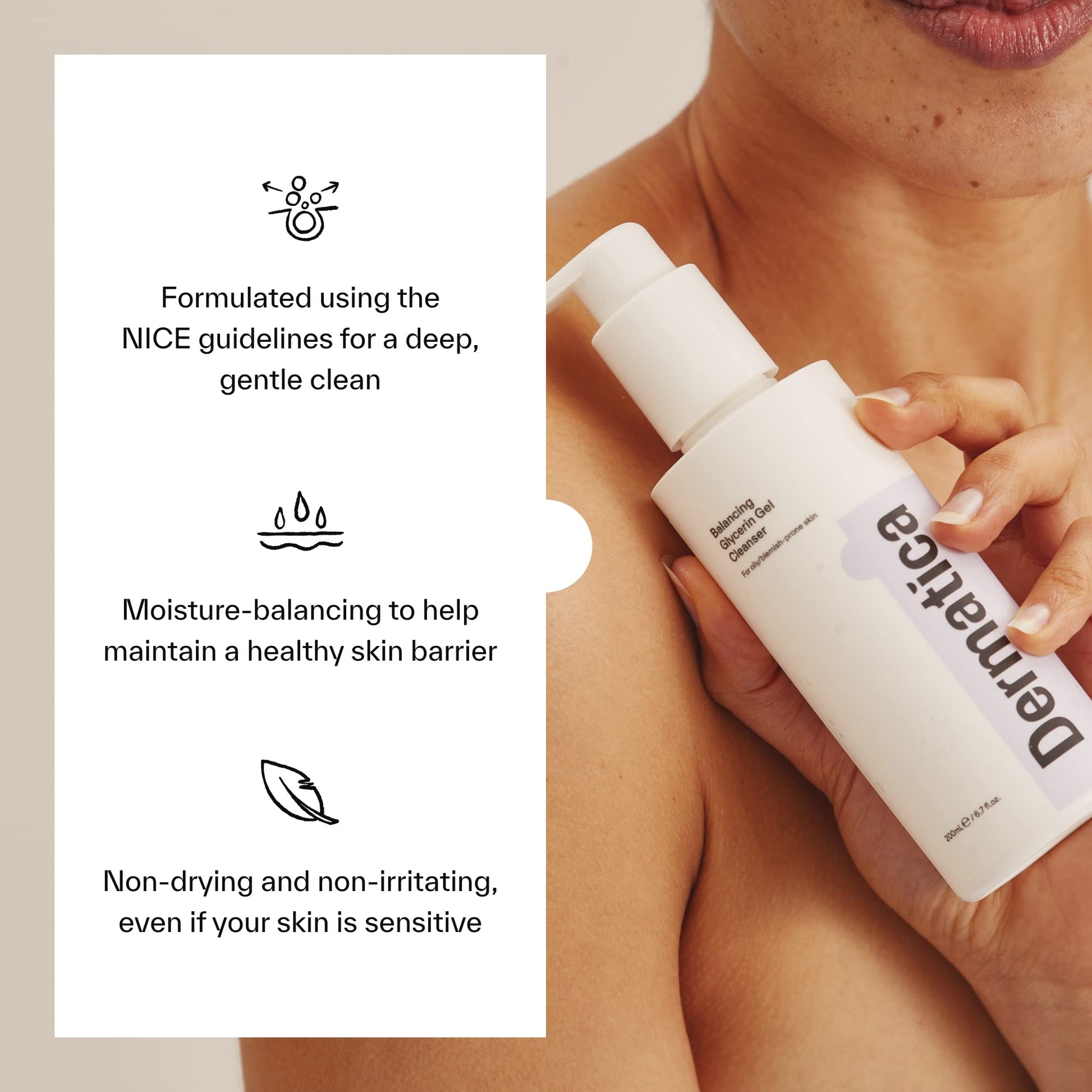 Dermatica Anti-Breakout Balancing Glycerin Gel Cleanser | Suitable for Acne Treatments I Clarifying Daily Cleanser for Removing Makeup | For Oily, Acne, Blemish-Prone Skin (200ml)