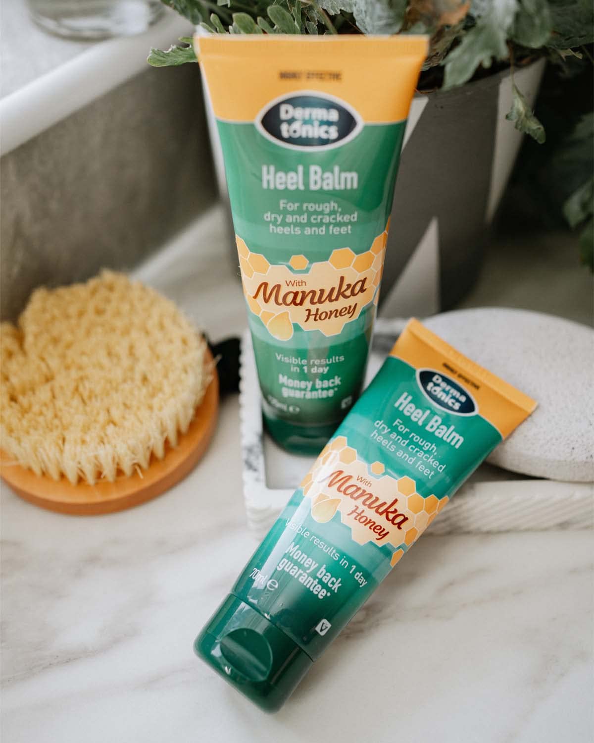 - DRY FOOT CARE - Dermatonics Heel Balm with Manuka Honey is infused with natural New Zealand Manuka Honey, renowned for its hydrating and antimicrobial properties. This makes it an excellent choice for dry foot daily care.