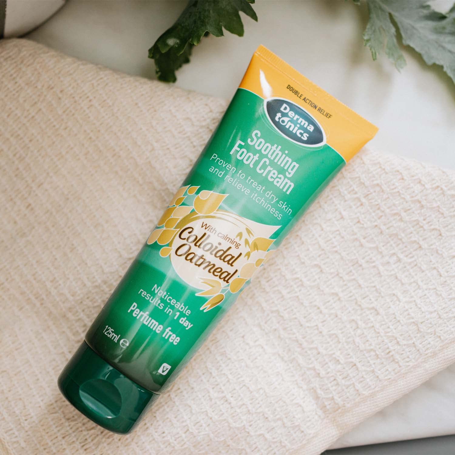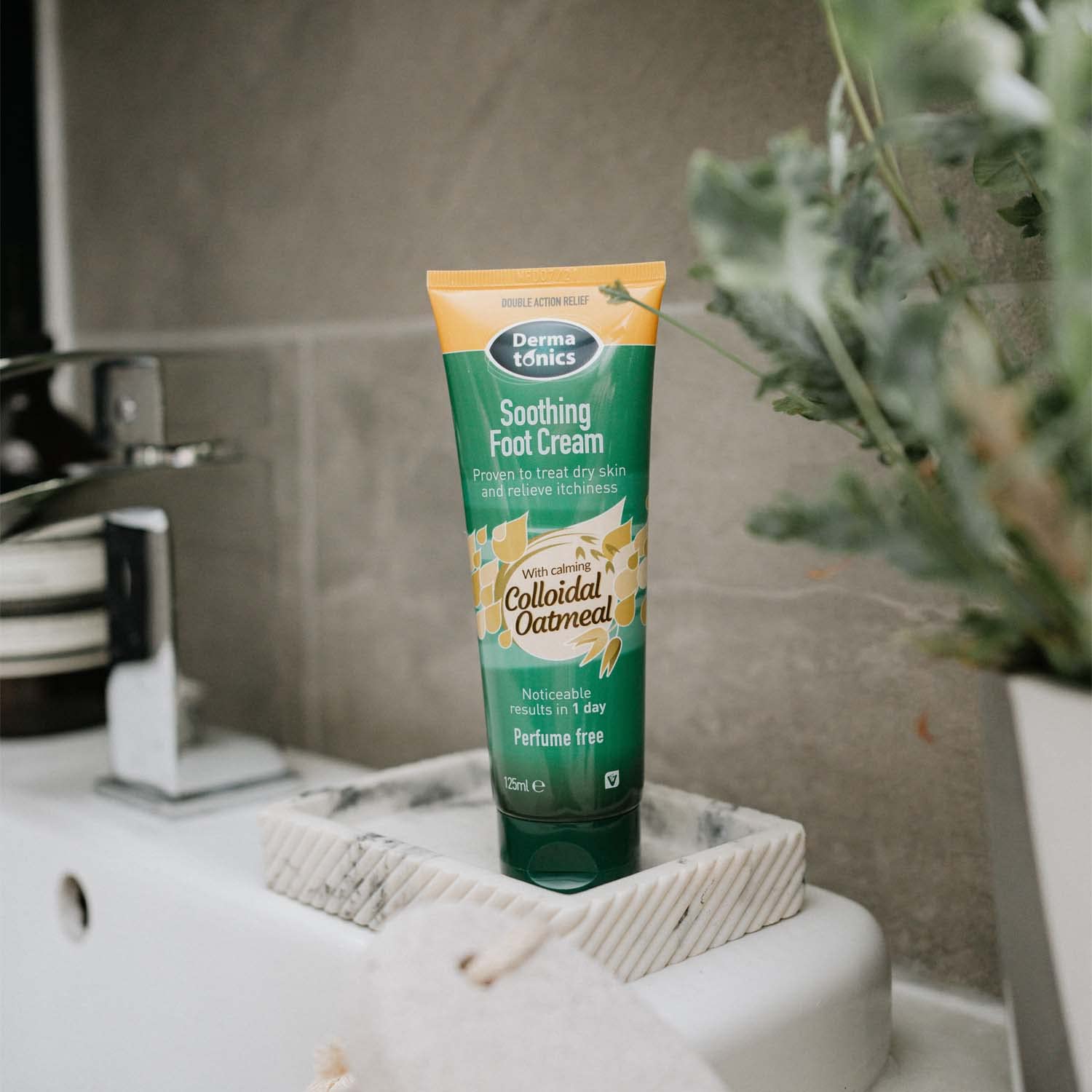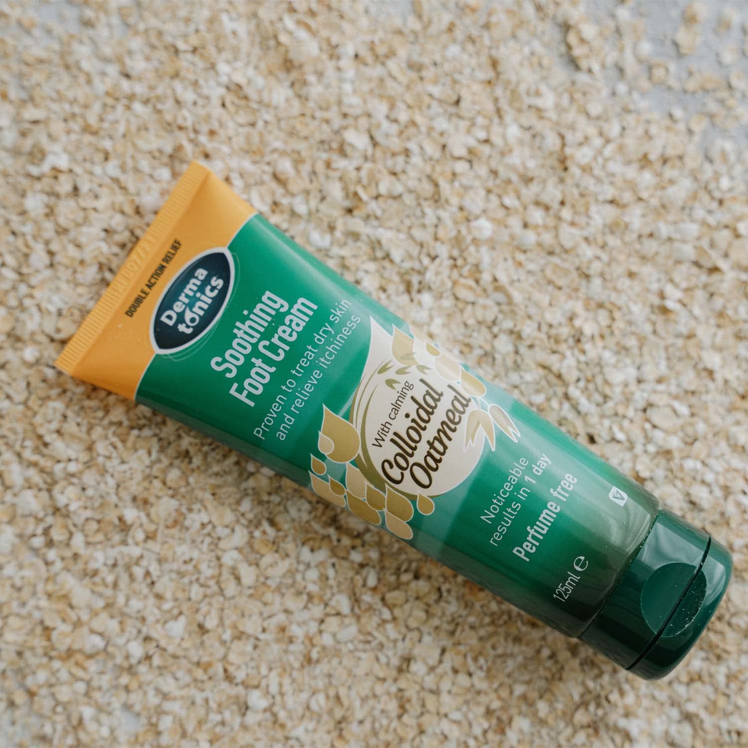 Dermatonics Soothing Foot Cream - the perfect solution for dry, itchy feet caused by conditions such as athlete's foot, dermatitis, and other dry skin conditions. Our natural care foot cream contains a blend of calming colloidal oatmeal and Finnish colloidal oatmeal that works quickly to remove dry, hard skin while simultaneously moisturizing your feet.