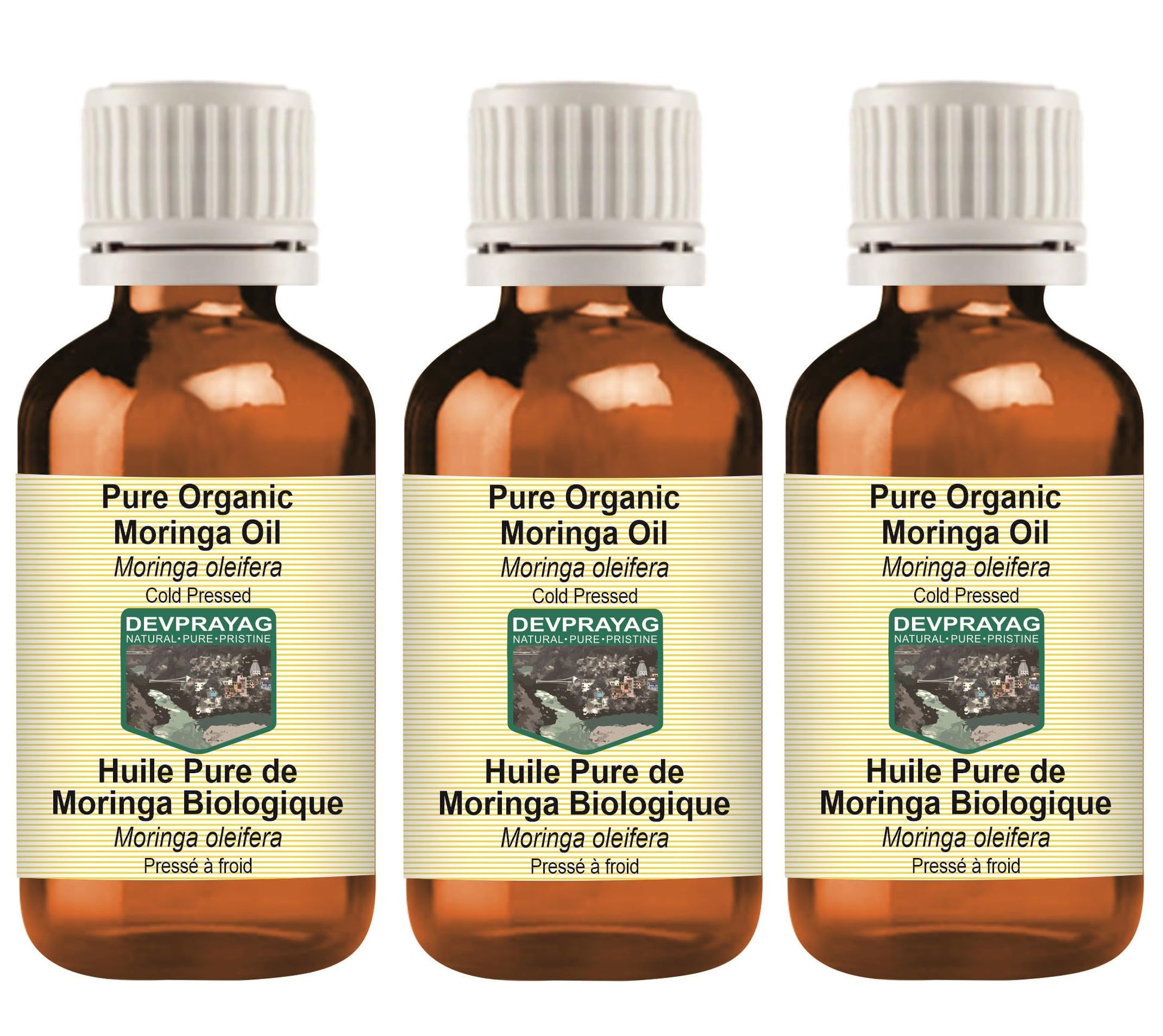 DEVPRAYAG Devprayag Pure Moringa Oil (Moringa oleifera) Natural Therapeutic Grade Cold Pressed (Pack of Three) 100ml x 3 (10 oz)