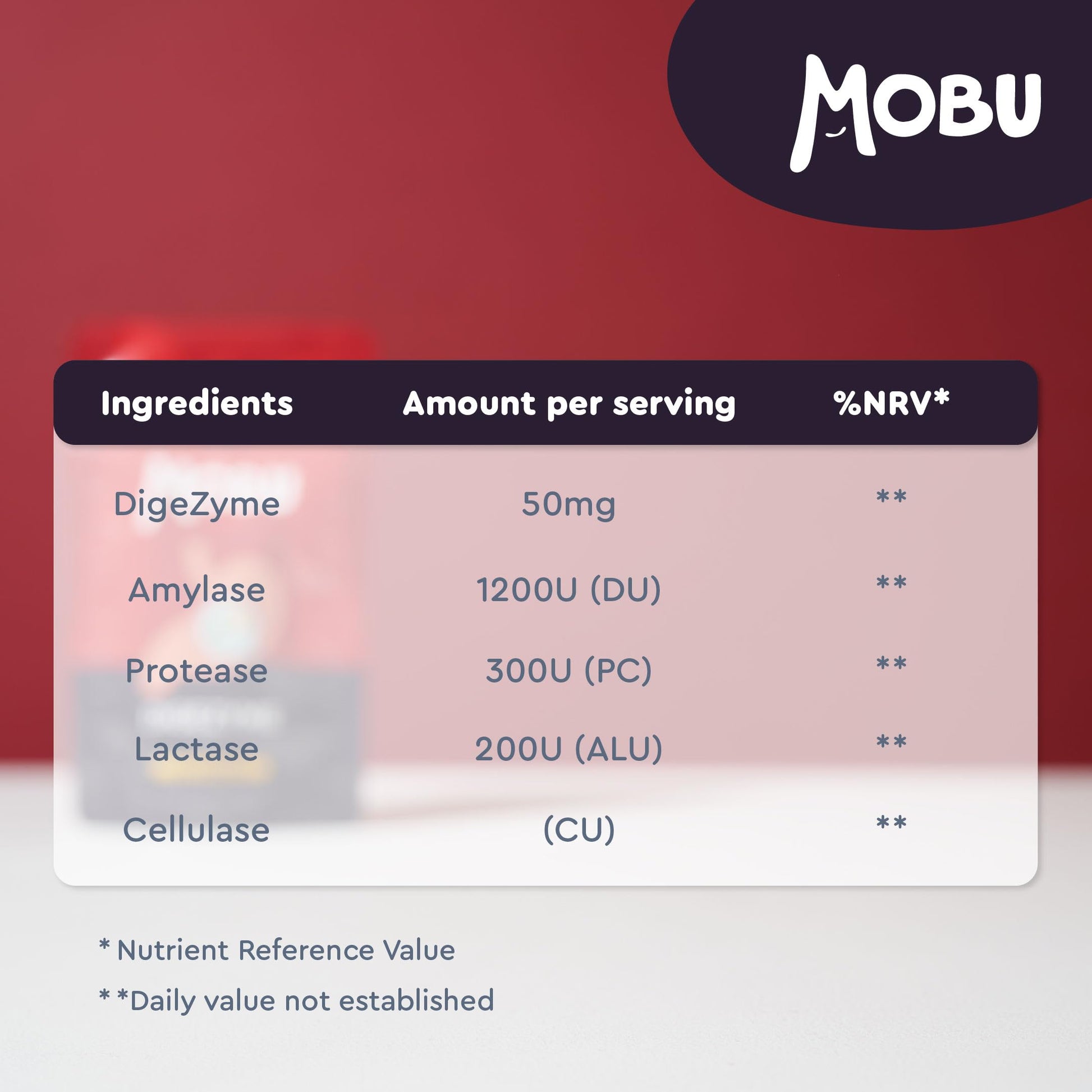 Make MOBU Digezyme a part of your daily routine and optimize your digestive health. With MOBU, you can trust that you're investing in a premium product designed to support your well-being. Unlock the potential of better digestion and embrace a healthier, happier you with MOBU Digezyme 50mg.