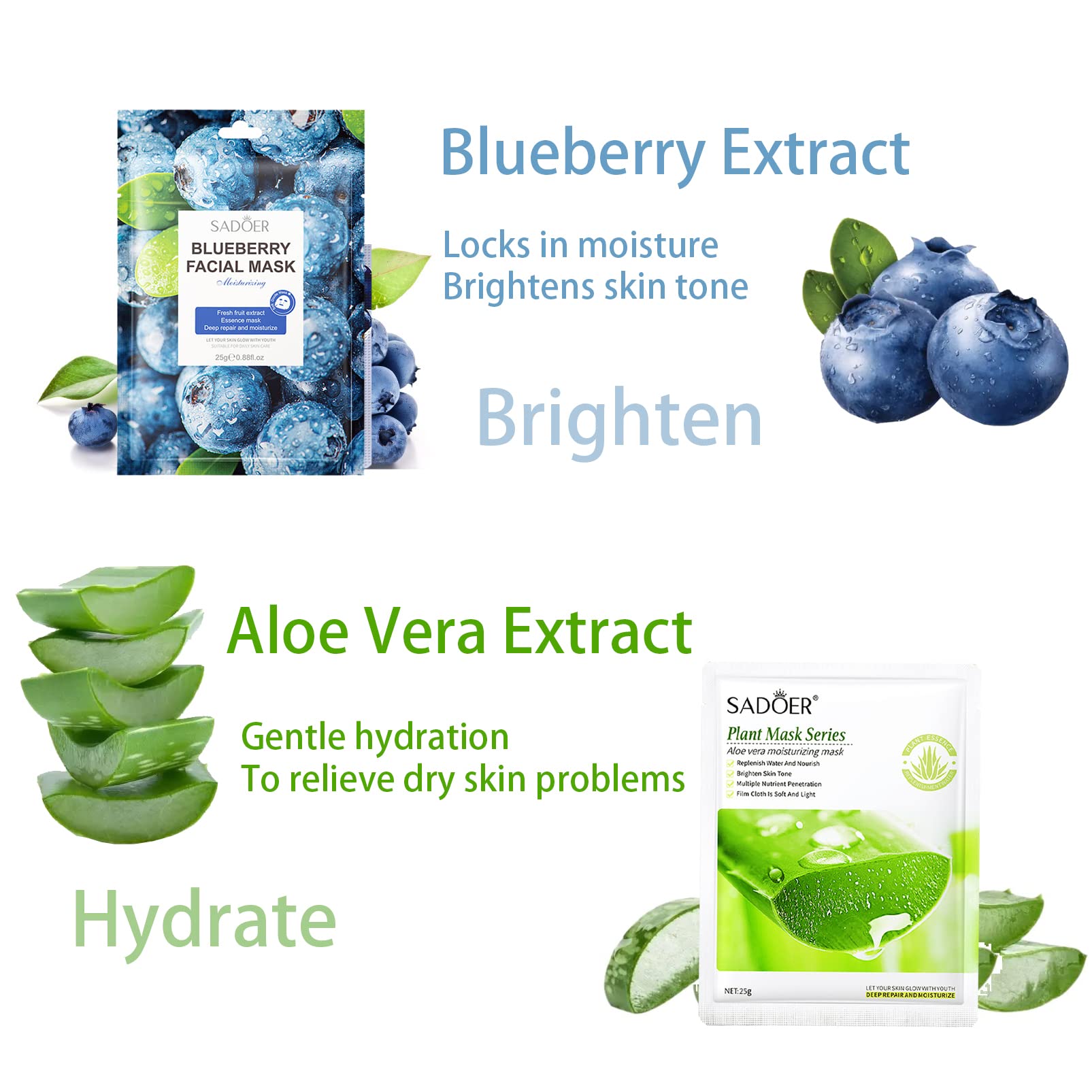 DMQ Hydrating Face Mask,Hydrating Moisturising Face Sheet Masks Nourishing Improves Skin Face Care,Face Mask Set for Dehydrated, Dull and Tired Skin,Pack of 5 Sheet Masks (5PCS-A)