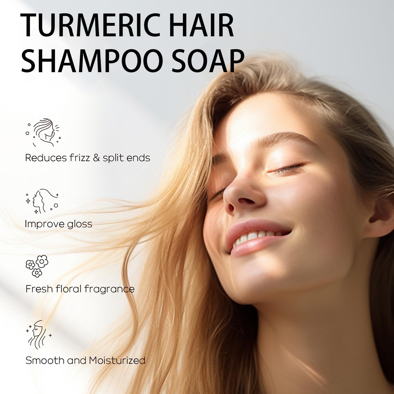 Turmeric shampoo bar makes all hair, even dry and treated hair, look shiny, silky and soft. Maintain a healthy scalp environment and provide multiple hair care.