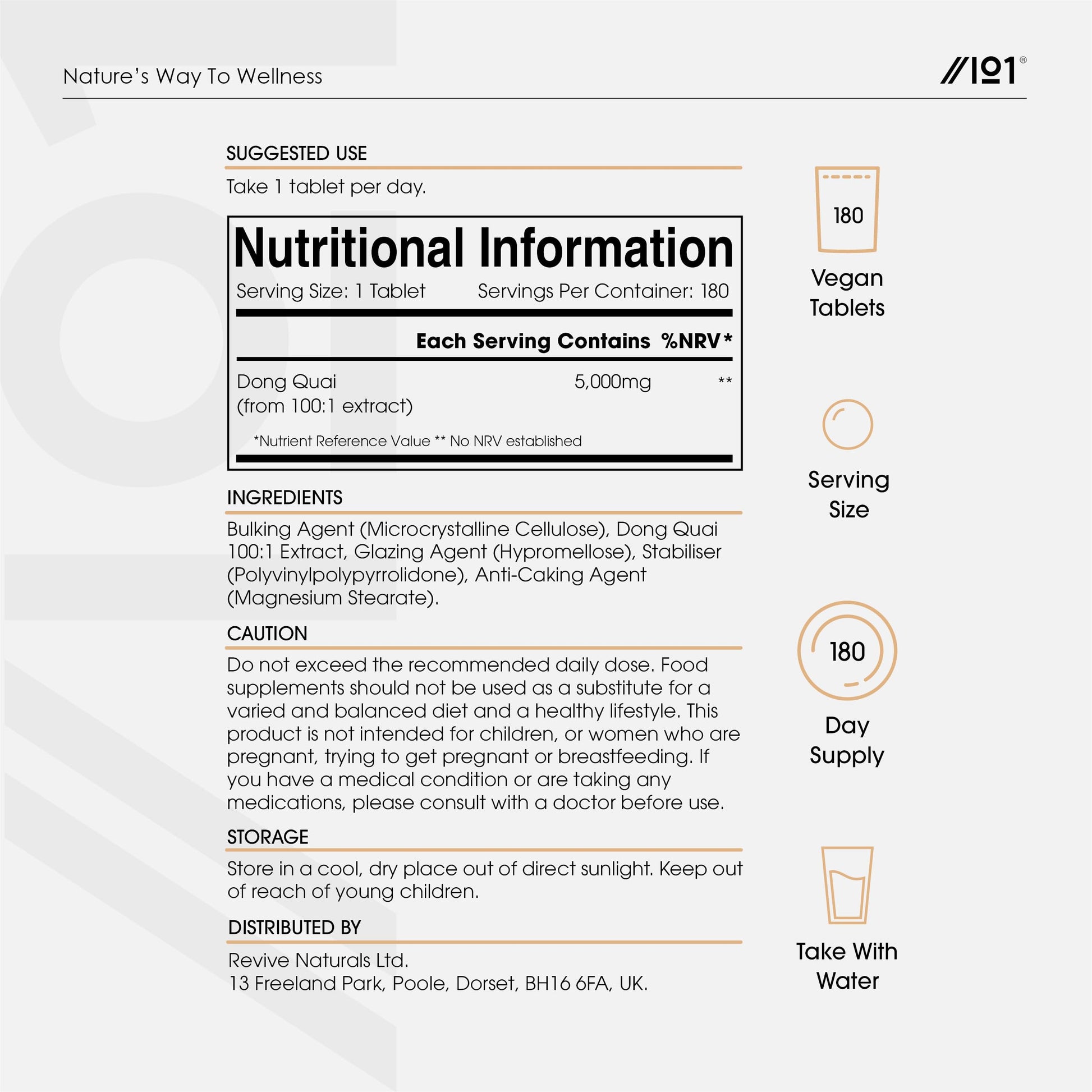 Dong Quai Extract 5000mg – High Strength 100:1 Angelica Sinensis Extract Supplement – 180 Vegan Tablets – Resealable and Recyclable Pouch by Alpha01