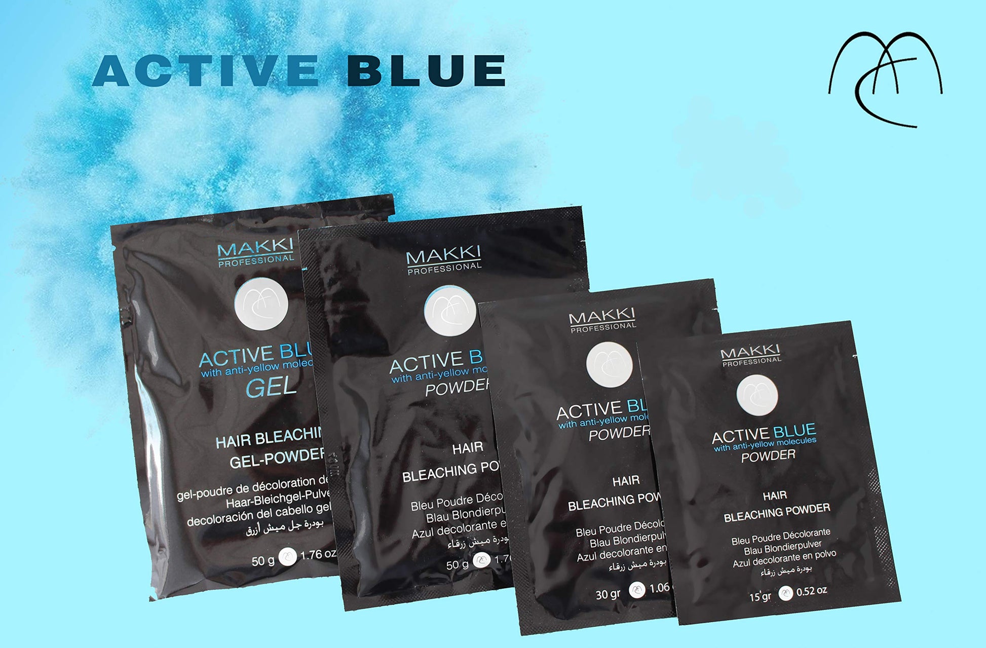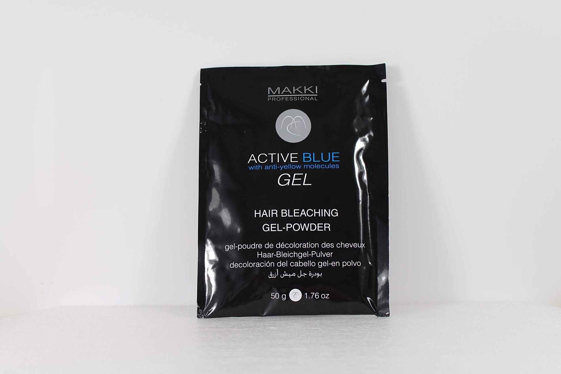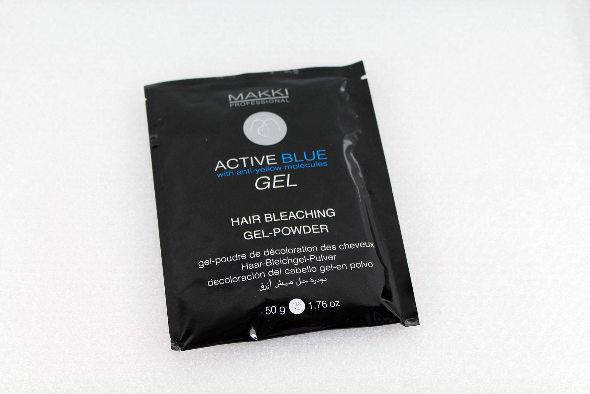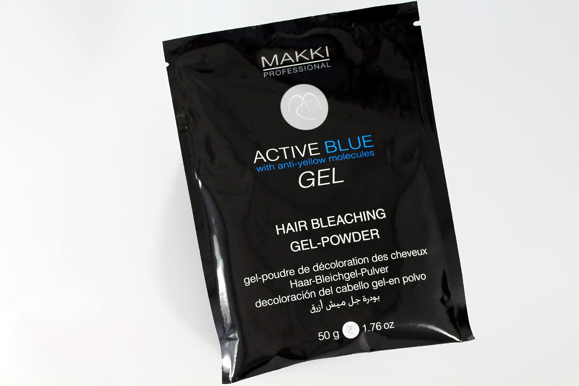 Makki Active Blue hair bleaching gel-powder is a Non-volatile jellified bleach that can lighten up to 5 levels. Contains mineral oils, gelling agents, and clay mineral to create a lipid film which coats every hair to retain the hair moisture and prevent it from becoming dry. Its creamy, non-volatile texture provides excellent adhesion and easy distribution on the hair to ensure an even bleaching process. The lightening granules are covered with a bluish tint to neutralise the hair. Suitable for all bleaching techniques including highlights, foil bleach, none-foil applications, balayage and full hair lightening. Application: Mix one part of the Active Blue Gel with two parts of Makki Oxy (1:2) into a NON METALLIC container. mix well and apply with a brush to the hair to be whitened. Leave for 20 to 40 minutes depending on hair condition and desired application. Rinse with plenty of water.More Info