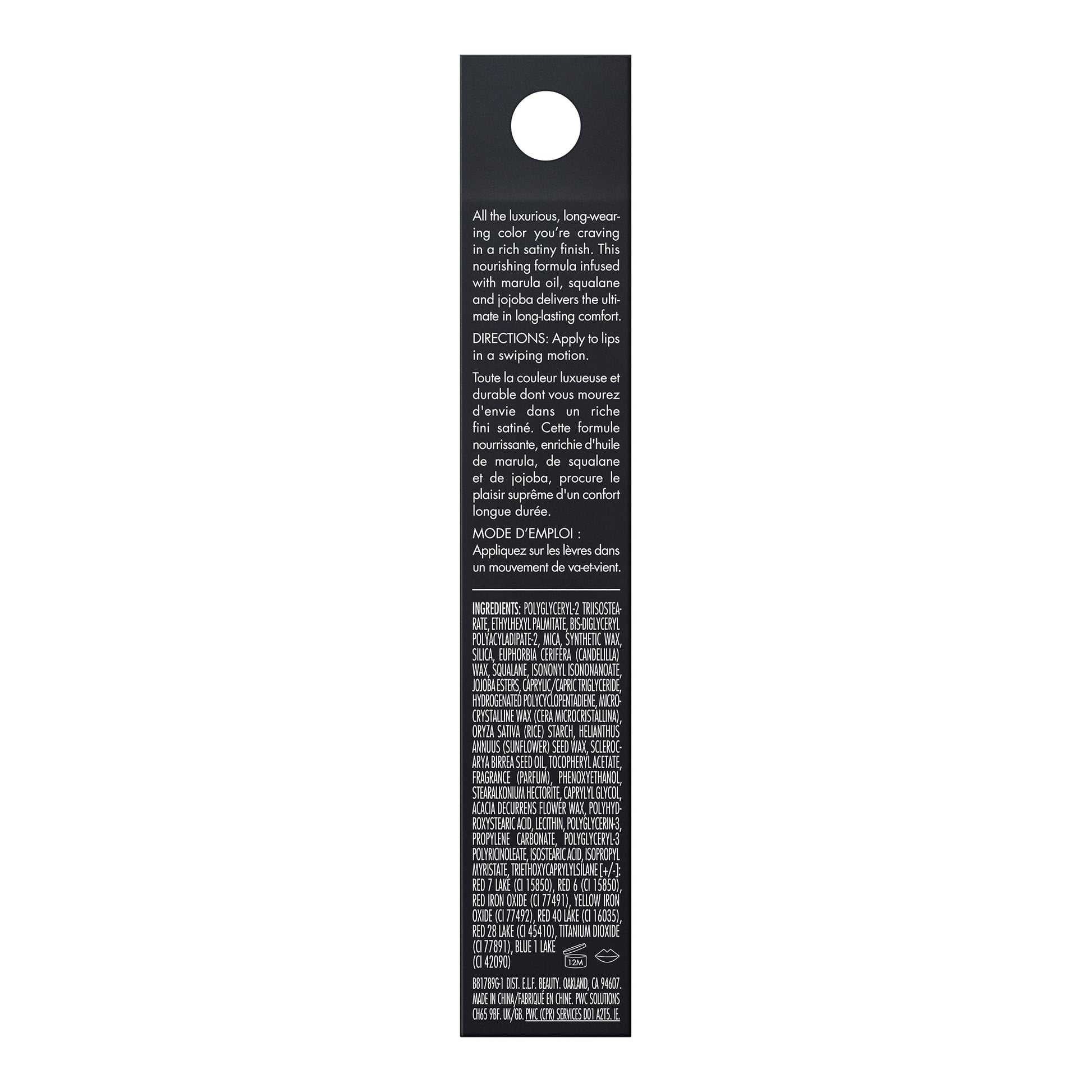 - HYDRATING & LONG-LASTING FORMULA: e.l.f. Cosmetics’ O Face Satin Lipstick's creamy, long-lasting formula is infused with nourishing & hydrating squalane and jojoba esters for a super-comfortable, next-to-nothing feel.