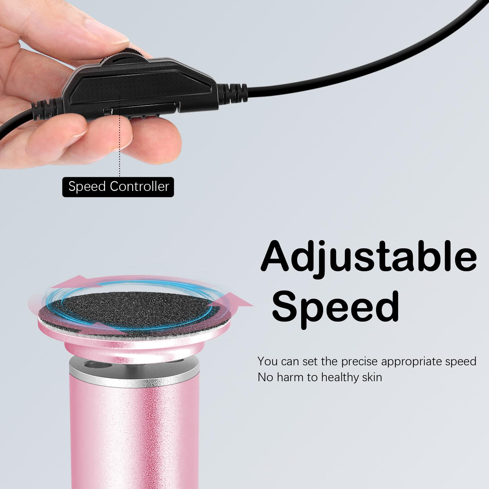 FeaturesThis electronic foot file has a independent speed controller, you can adjust different levels speed, fast or slow, won't hurt your skin.
