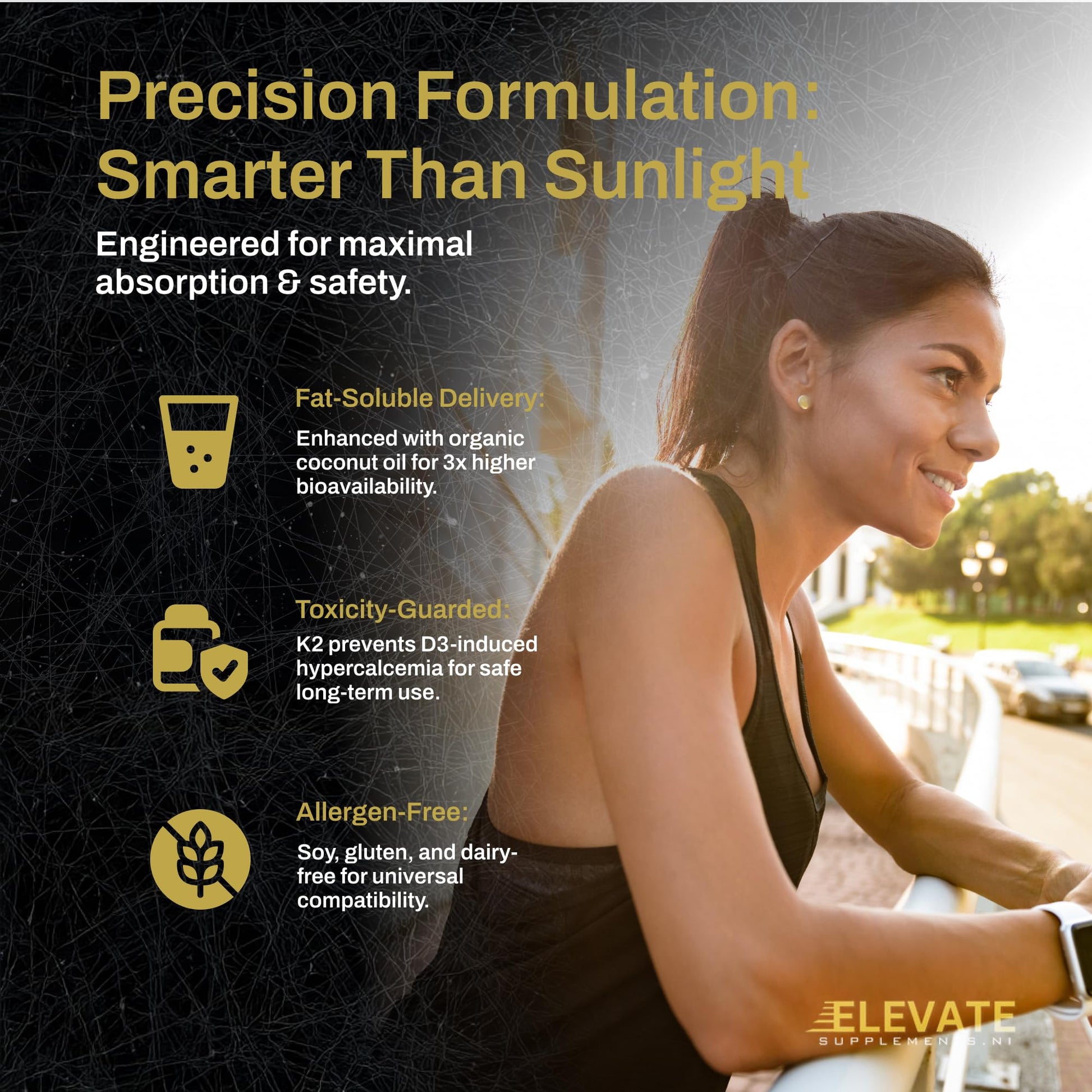 ElevateSupplementsNI Elevate Supplements Vitamins D3 + K2, 60 Capsules | High Strength Vitamin Supplement for Bone, Brain, Heart, Immune & Muscle Support | Bioactive & Antioxidant Formula | Daily Calcium Absorption Aid