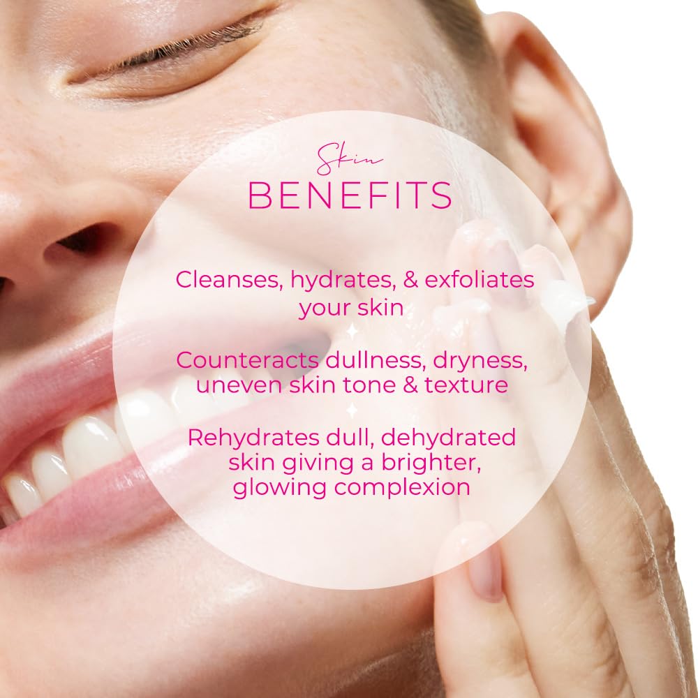 Say hello to brighter, glowing, and hydrated skin with Ella & Jo Brighten & Glow Hydrating Exfoliating Cleanser. Packed with super ingredients, this gentle daily cleanser cleanses, exfoliates, and hydrates dull, dehydrated skin for a smooth and radiant complexion. Our unique blend of superfood ingredients gently cleanses, hydrates, and softens your skin, leaving it silky smooth and radiant. The pumpkin enzyme-based exfoliating face wash removes dead skin cells, counteracting dryness and uneven skin tone and texture. Suitable for all skin types, this gentle exfoliant doubles as a makeup remover, daily cleanser, and deep cleansing mask. Formulated with raspberry seed oil, squalane, grapeseed, sunflower, and coconut oil, this exfoliating face wash is rich in antioxidants that nourish and protect your skin. Elevate your skincare routine with Ella & Jo Brighten & Glow Hydrating Exfoliating Cleanser and unveil professional-quality results in the comfort of your own home.More Info