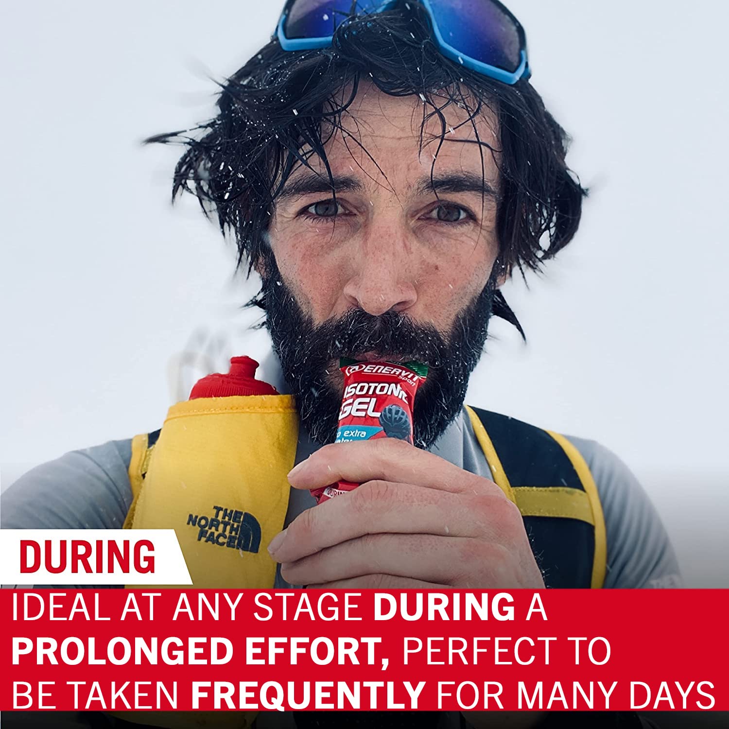 - Enervit Sport Isotonic Gel is suitable for all the phases of the prolonged effort (in particular the first 2h), even for the most sensitive athletes