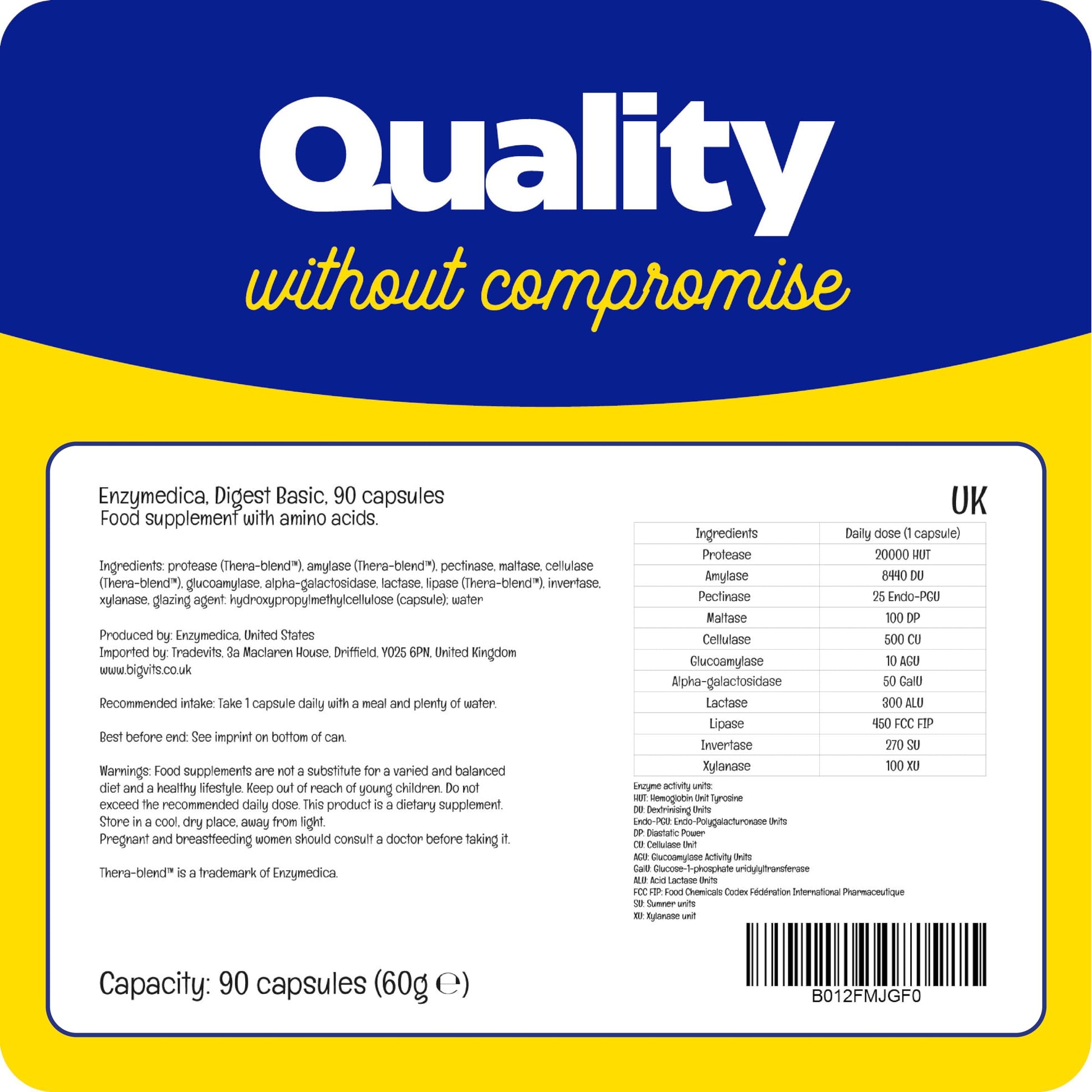 Enzymedica, Digest Basic, Digestive Enzymes, 90 Vegan Capsules, High Dose, Soy Free, Vegetarian, Gluten Free, Non-GMO