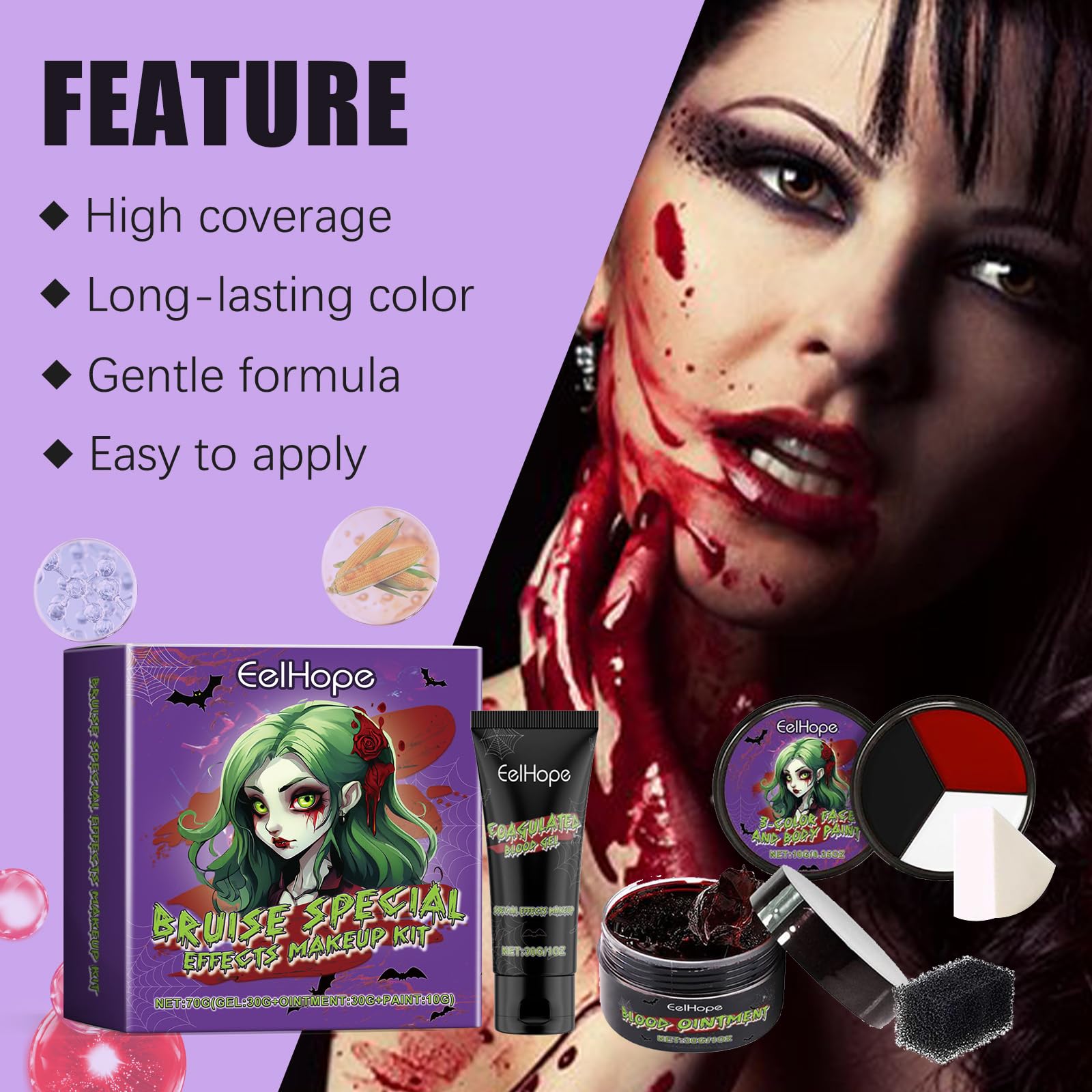 EONFAVE Halloween SFX Makeup Kit - Realistic Vampire Makeup - Fake Blood Makeup Kit - Special Effect Makeup Paint With Sponges, Scar Wax, Body Painting Palette for Halloween Cosplay Zombie Vampire