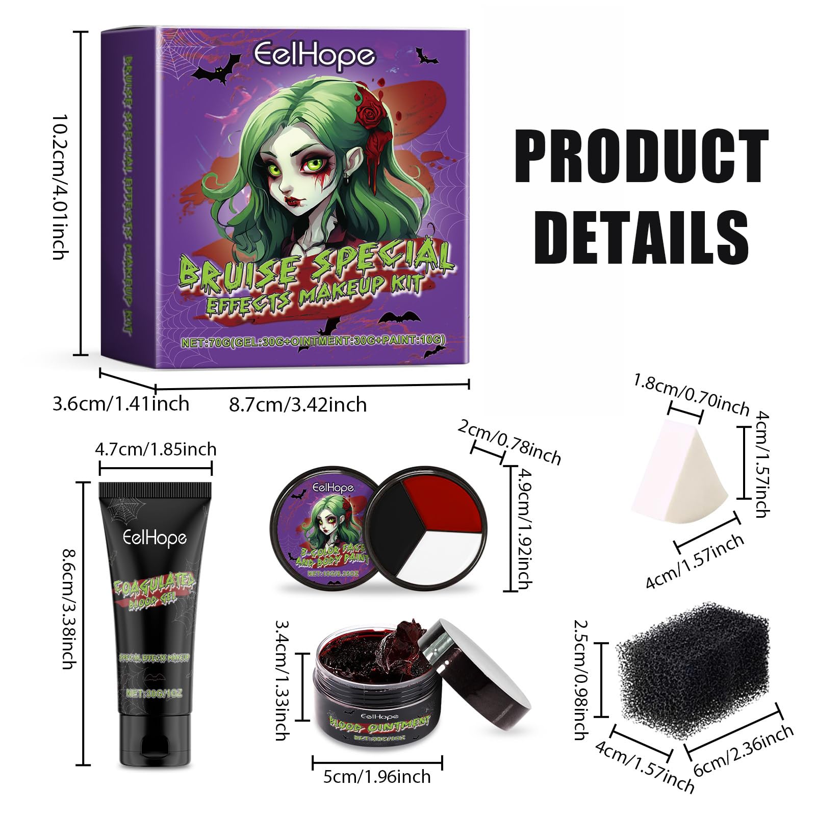Enhance the Halloween vibes with our makeup kit that lets you create a spine-tingling experience. Infused with various horror elements, it delivers a rich atmosphere to celebrate the festival.Specification: