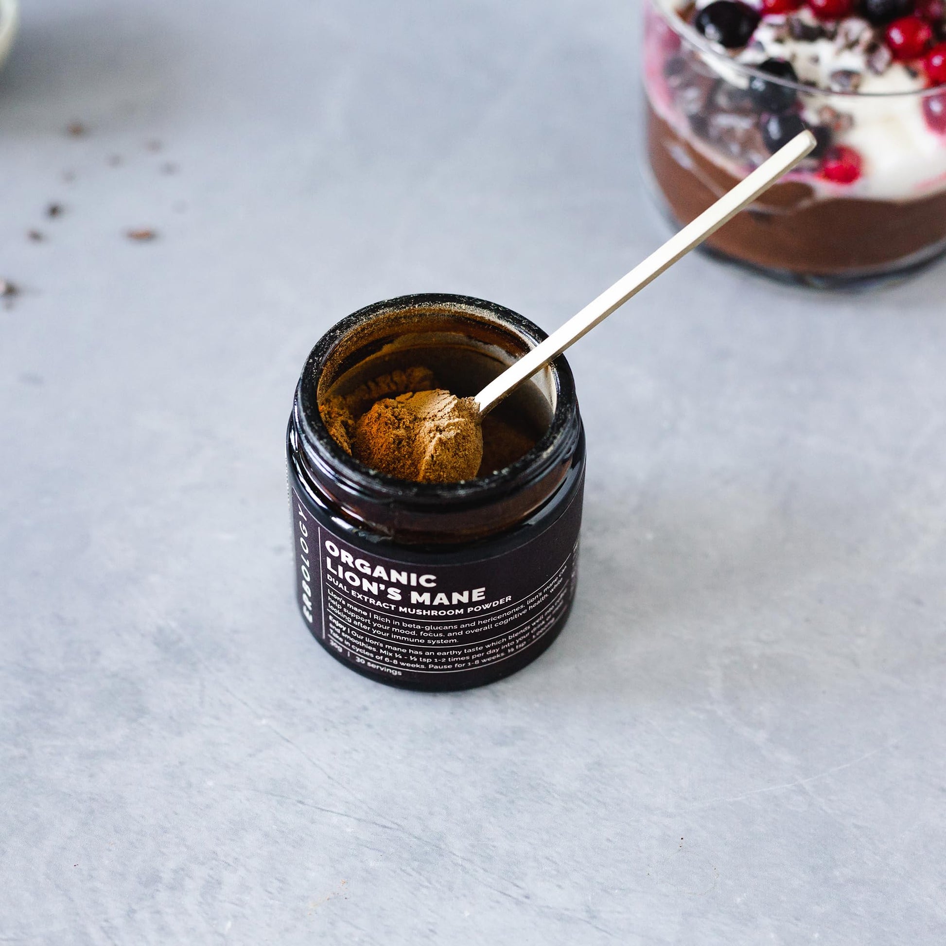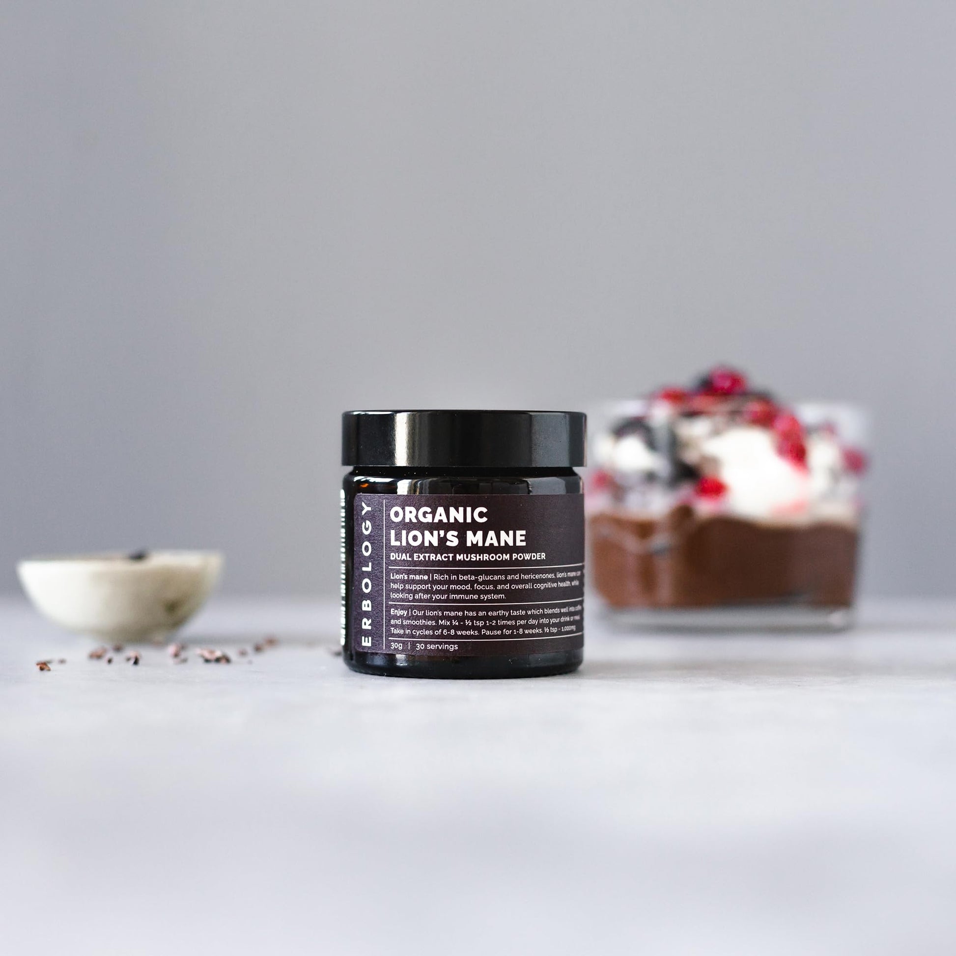 Erbology Organic Lion’s Mane Dual Extract Powder 30 Servings - 30% Beta-glucans and Erinacine A 1.6mg/g - Calm and Focus - Hericium Erinaceus - Sustainably Grown in Europe - Vegan - No Added Fillers