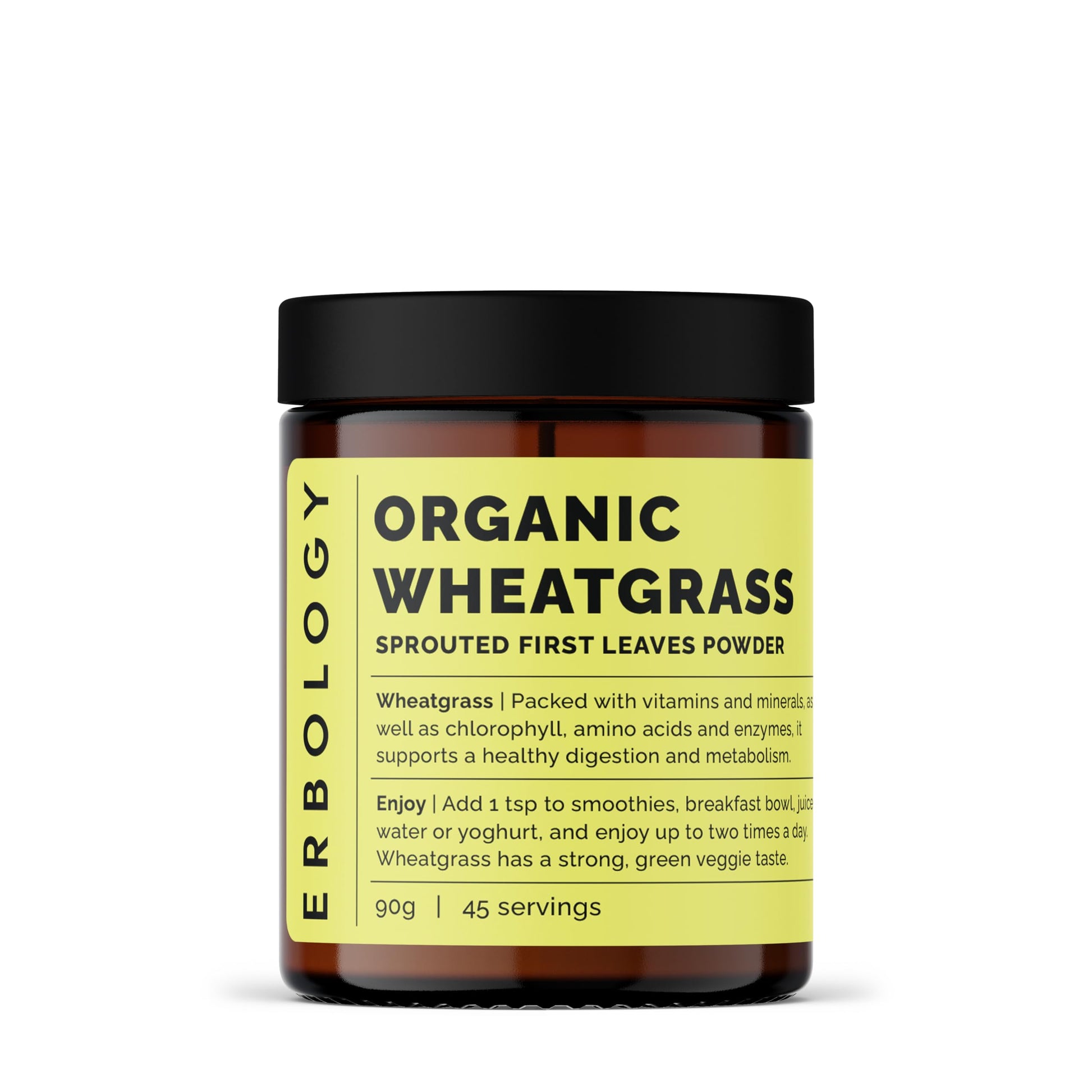 Erbology Organic Wheatgrass Powder 90g - 45 Servings - Body Cleansing and Gut Health Support - Rich in Chlorophyll and Iron - Sustainably Sourced in Europe - Small Batch - Vegan - GMO-Free